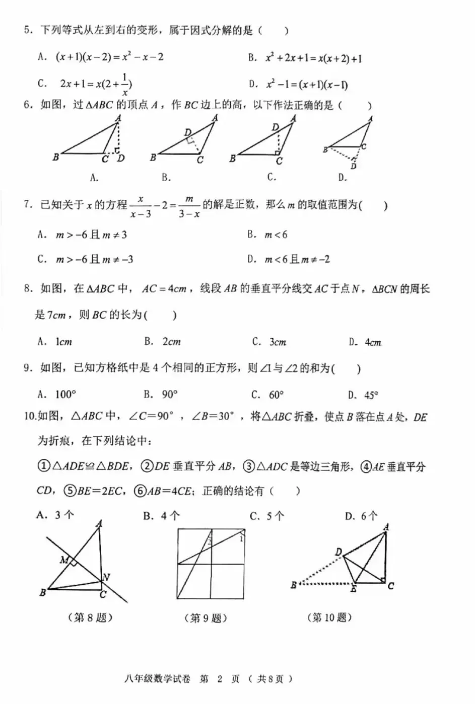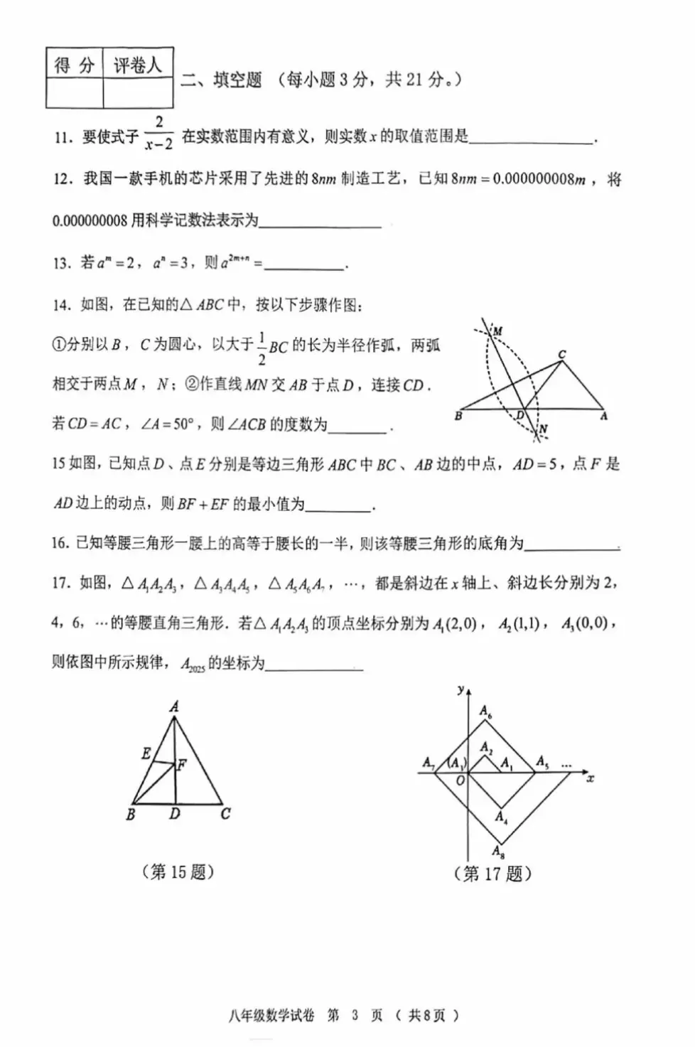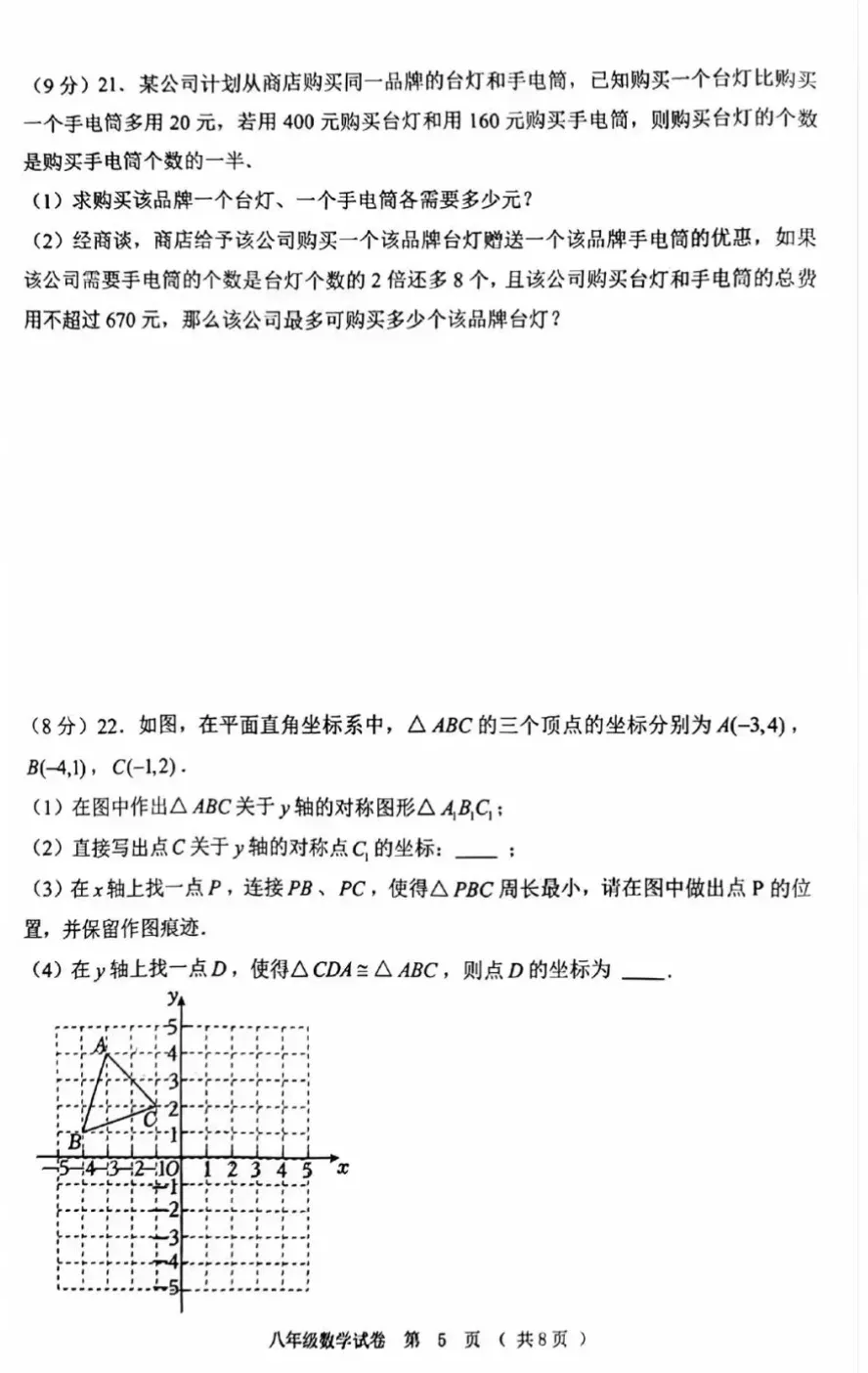 2025八年级上册数学期末考试试题