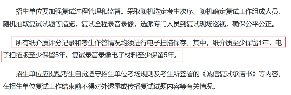 2026年起,教育部强制规定高校复试须全程录音录像,打分表等电子材料需存档不少于五年。这一措施进一步推动了复试过程的规范化与透明化。