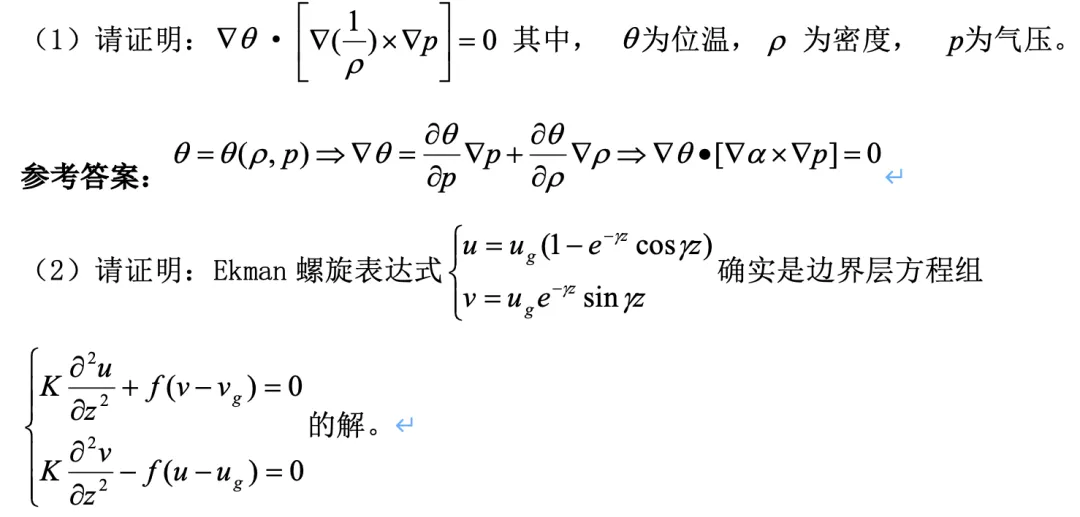 参考答案:包辛内斯克近似是针对大气密度所做的近似,在水平运动方程中的气压梯度力项,其密度扰动可以忽略,用其平均值代替;在垂直运动方程中,与浮力相关的密度扰动要加以考虑,不能忽略;在连续性方程中,大气密度扰动的个别变化项可以忽略;但热力学能量方程中,由密度扰动引起的能量变化与由于温度扰动变化引起的能量变化或者由于气压扰动变化引起的能量变化具有相同量级,不能忽略。