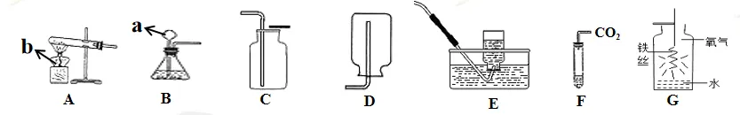 (3)如图G,铁丝在氧气中剧烈燃烧火星四射,生成黑色固体,而瓶底预先放入少量水的目的是防止集气瓶被烧裂。