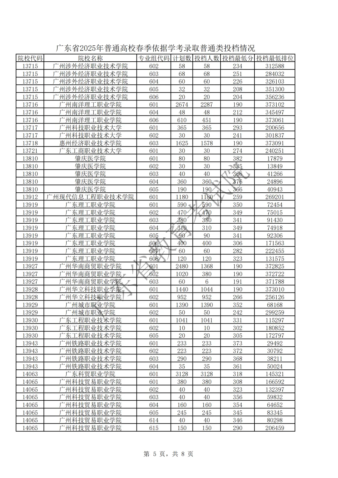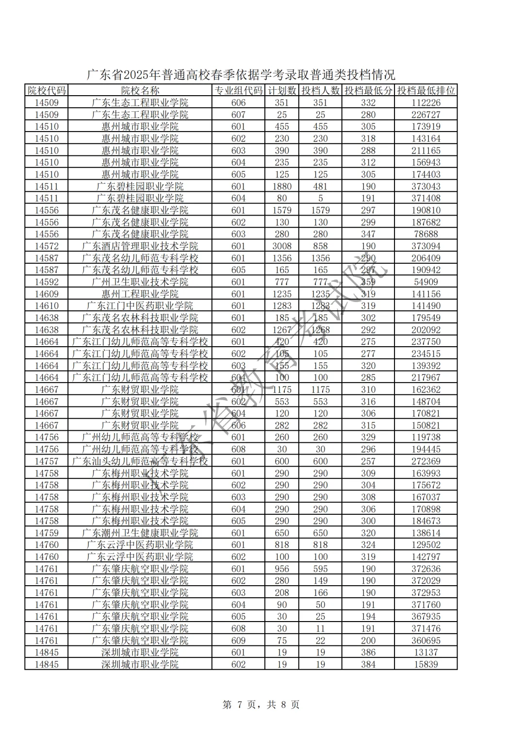 2025年春季高考(学考录取)第一次投档情况