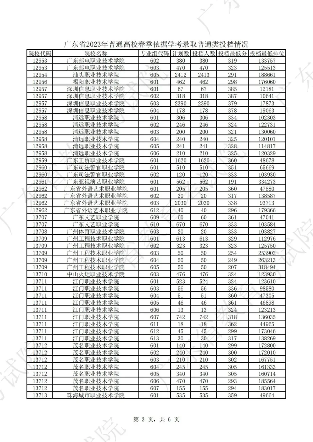 2023年春季高考(学考录取)第一次投档情况