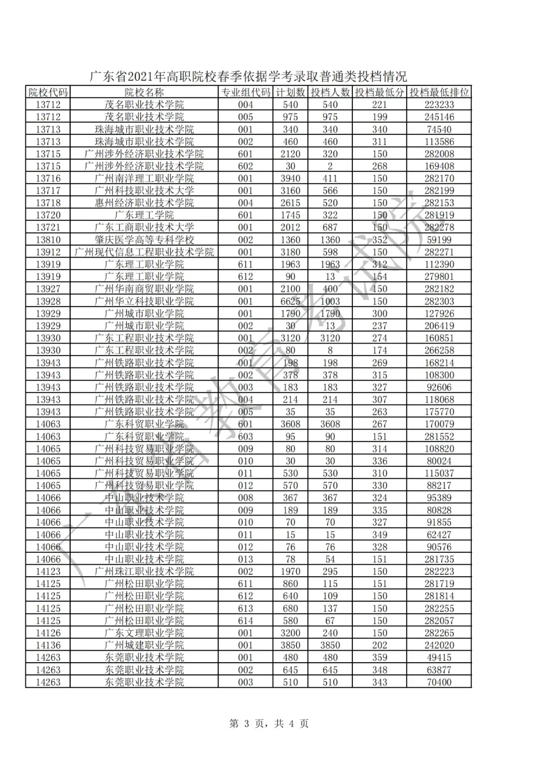 2021年春季高考(学考录取)第一次投档情况