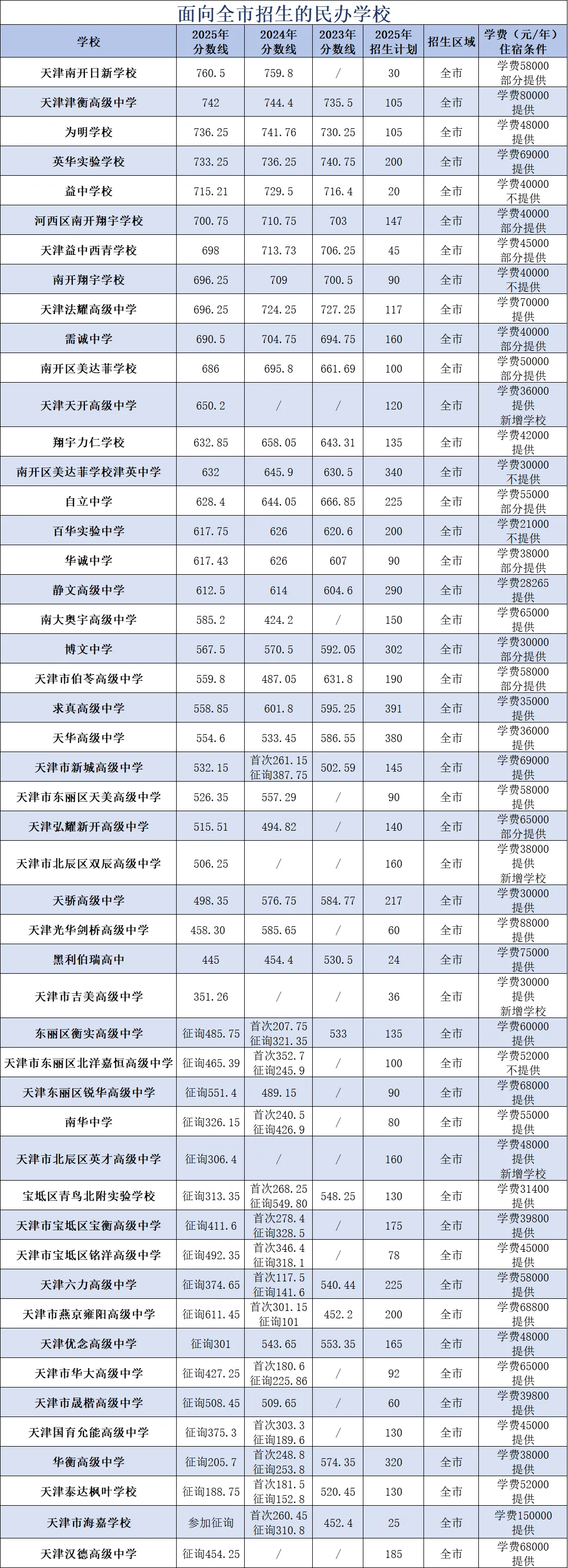 煜城给大家最新汇总出了2025年天津市全市241所高中招生计划与录取分数线,对于2026届考生极具参考价值,建议及时保存备用哦!