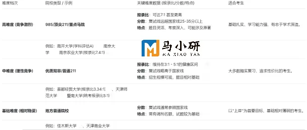 马理论考研的难度主要取决于你的目标院校,整体上呈现出“顶尖院校卷,普通院校稳”的鲜明分化格局。下表简单地展示了不同层次院校的竞争差异: