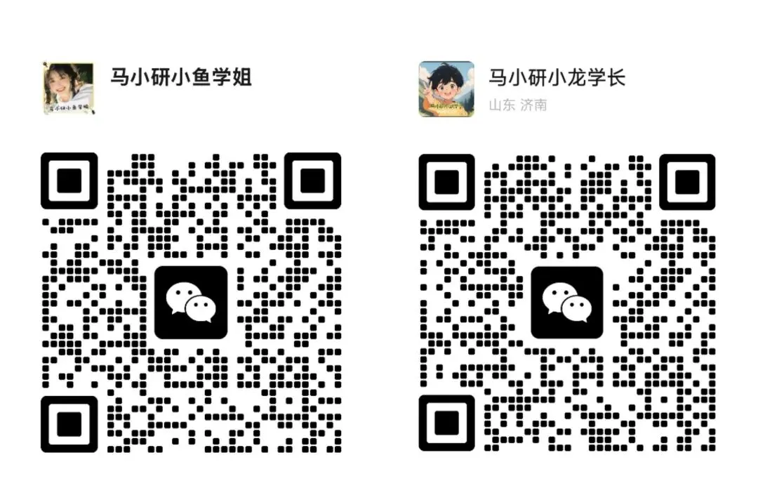 院校还有所犹豫的马小宝,可以参考马小研公众号或者小红书号之前发的关于择校、分数线等的推文和帖子哦,科学评估自己的水平,选择适合自己的院校,因为适合自己的才是最好的!