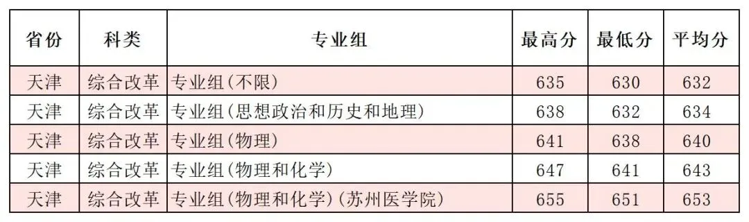 点击查看苏州大学2025年全日制普通本科招生专业录取分数(天津)
