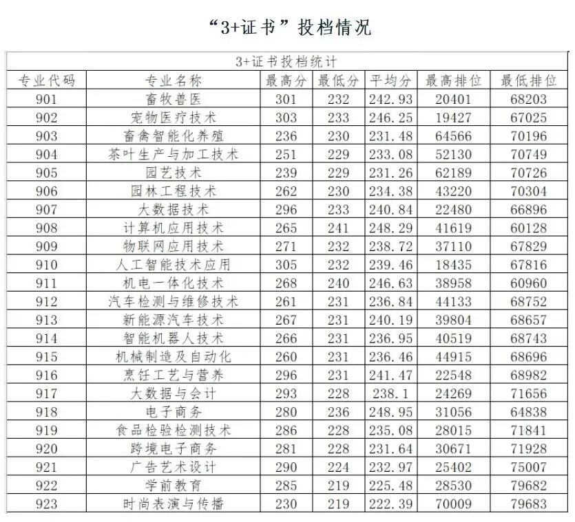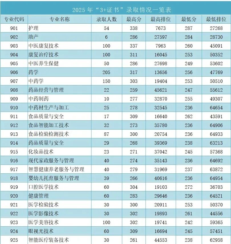 2025年3+证书本科录取情况