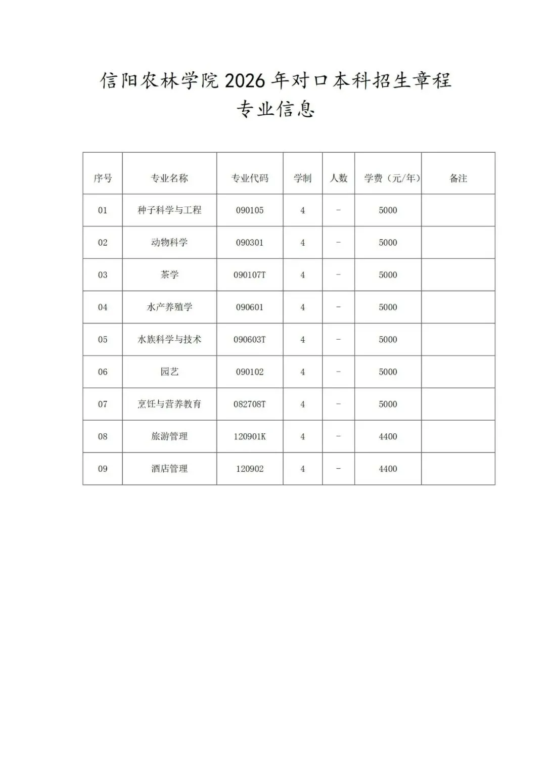 附件:2026年对口招生专业一览表