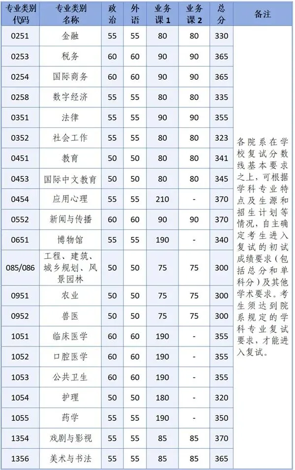 1. 医学院护理专业学位类别考生,满分为100分的科目成绩不低于50分,满分为300分的科目成绩不低于150分,总分成绩不低于320分。