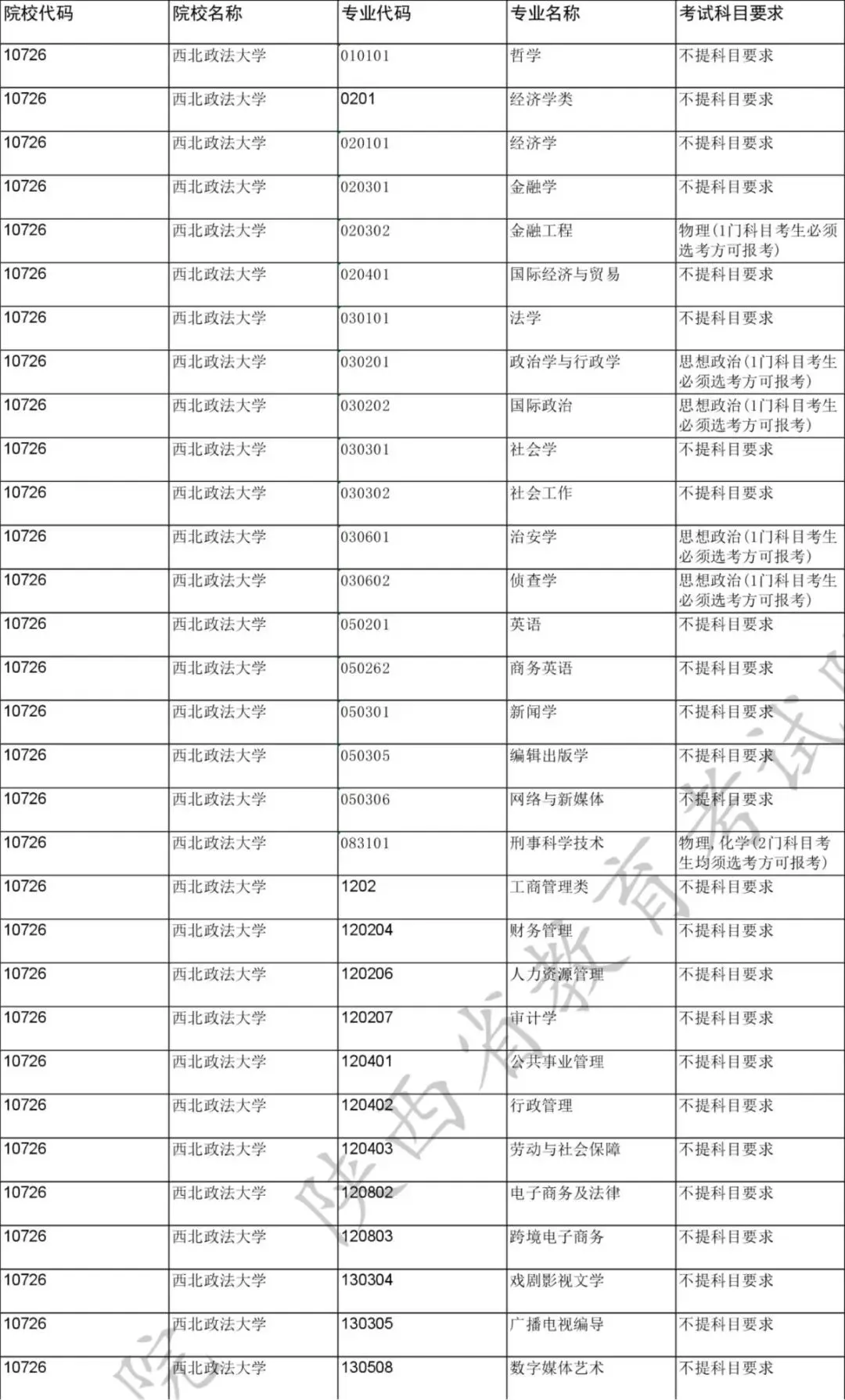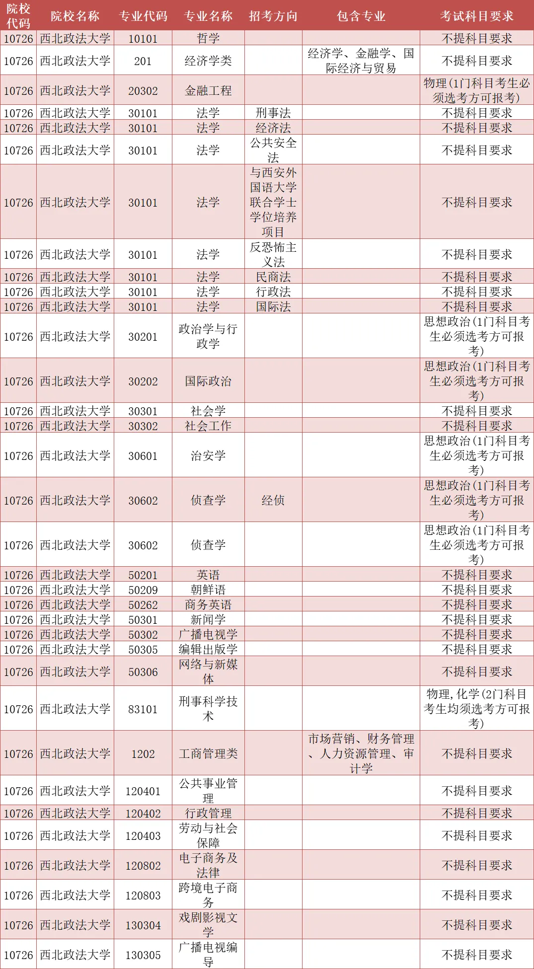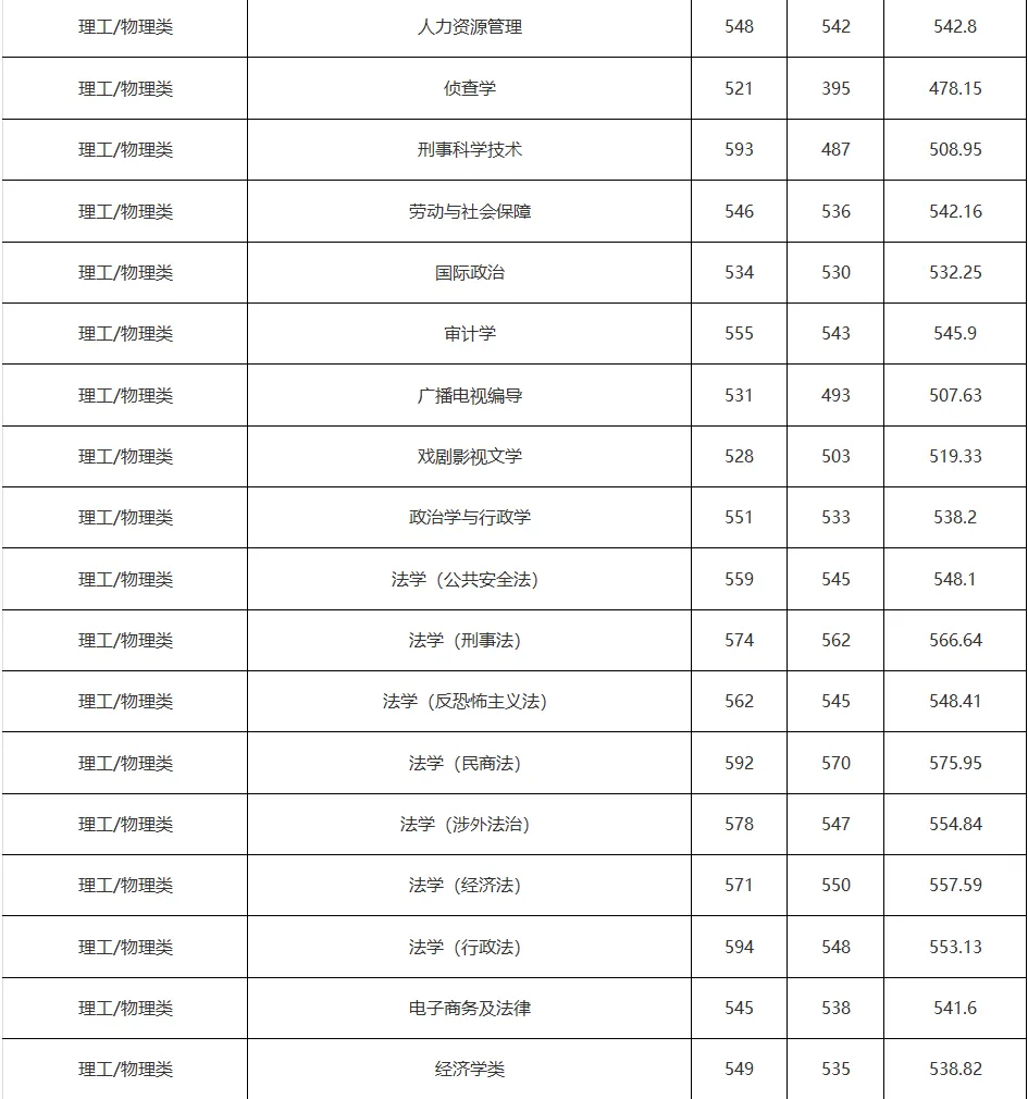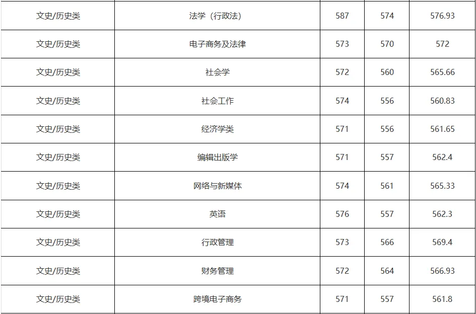 法学、英语、新闻学、电子商务及法律、财务管理、行政管理、政治学与行政学