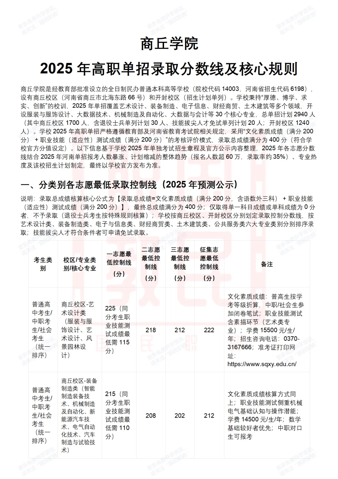 >高职单招 | 商丘学院2025年高职单招录取分数线及单招的同分排序、成绩折算与录取规则