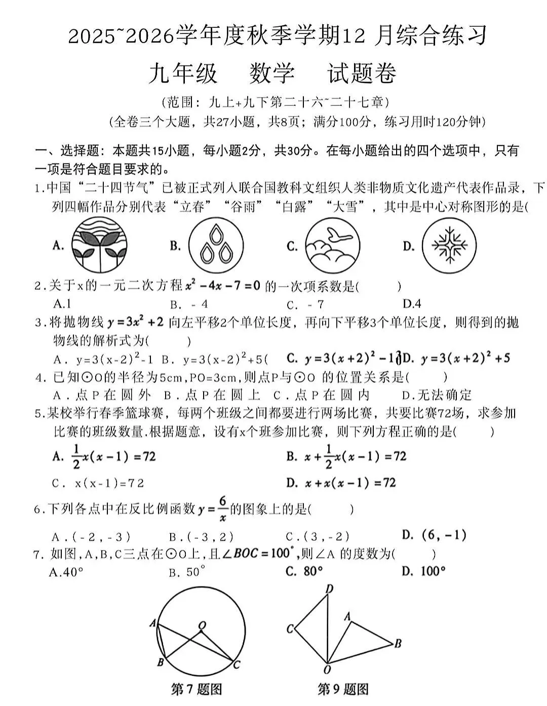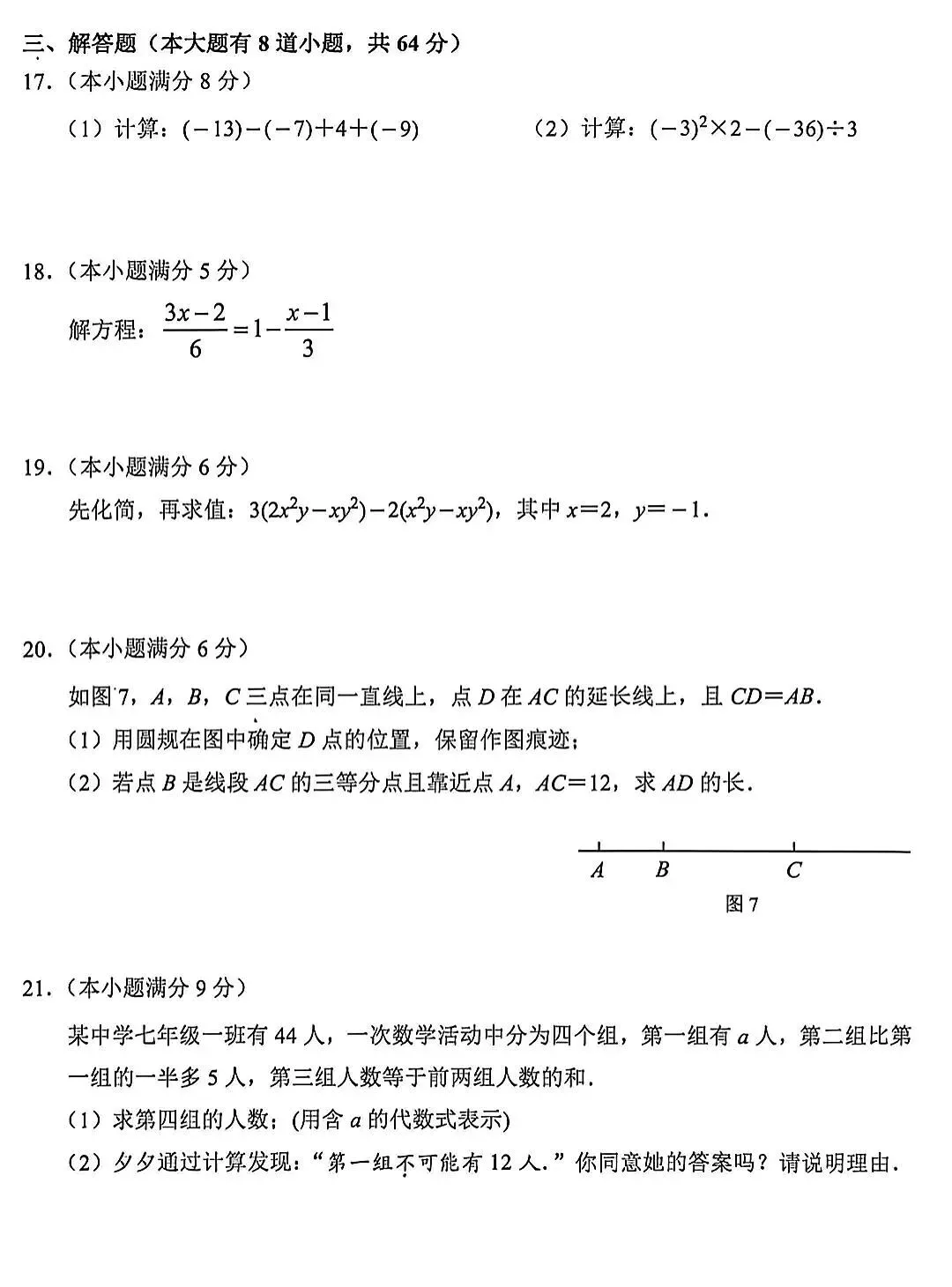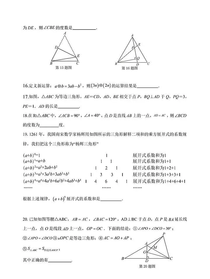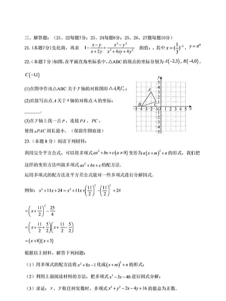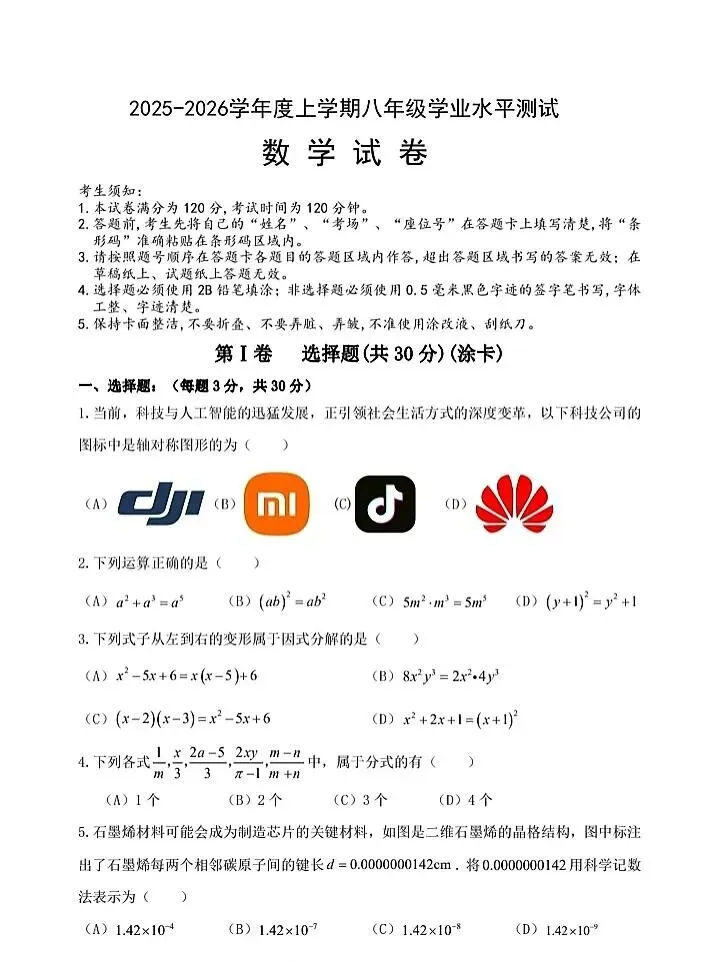 2026初中数学期末考试卷1