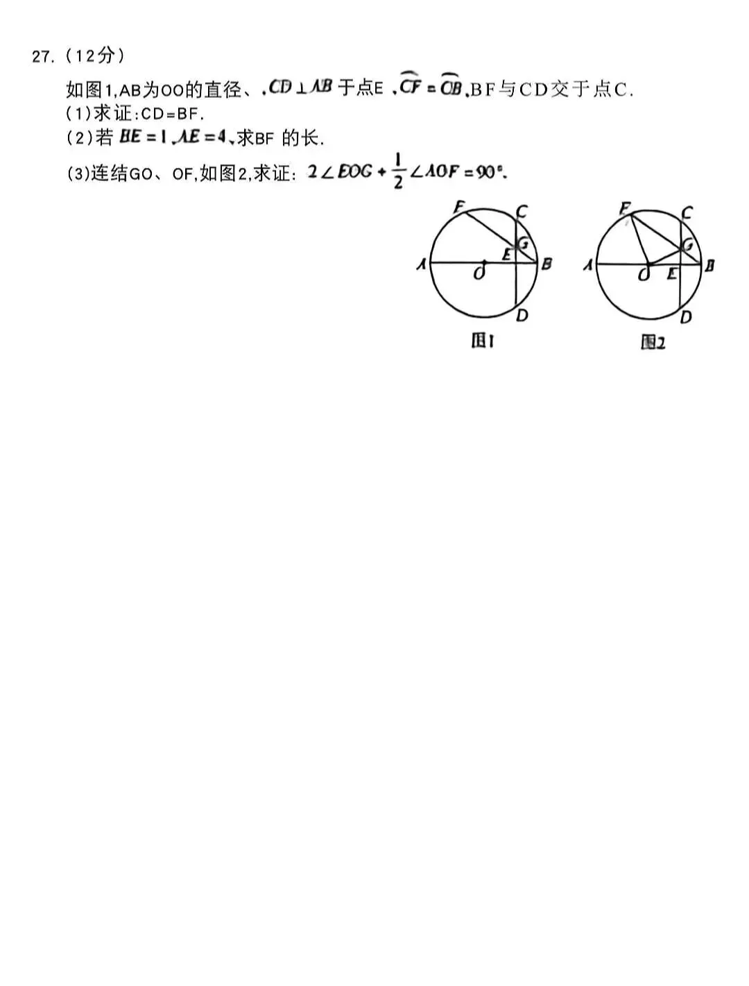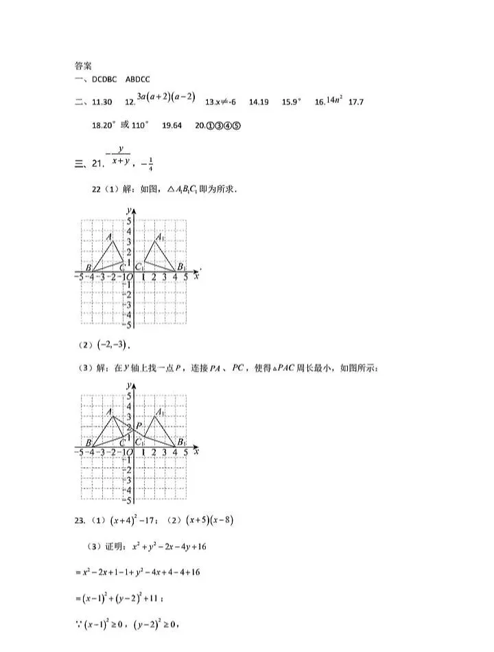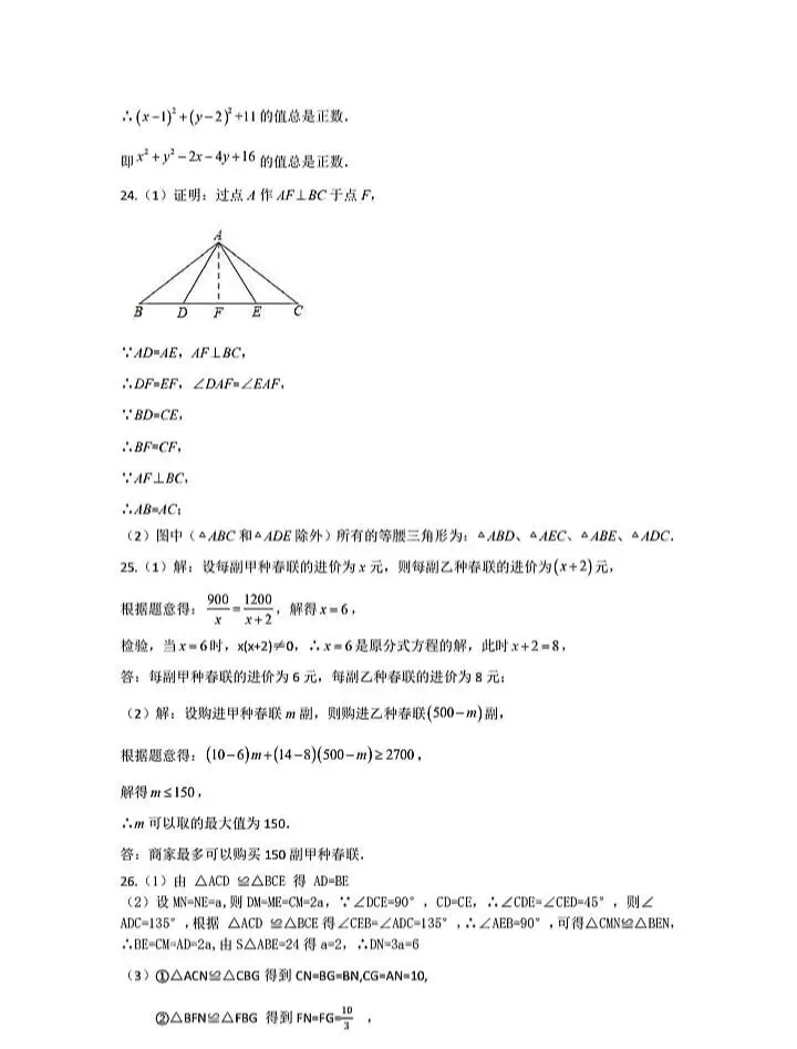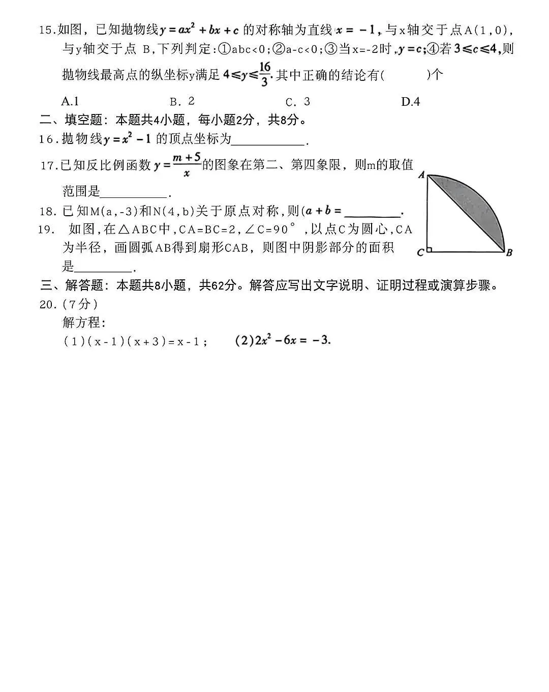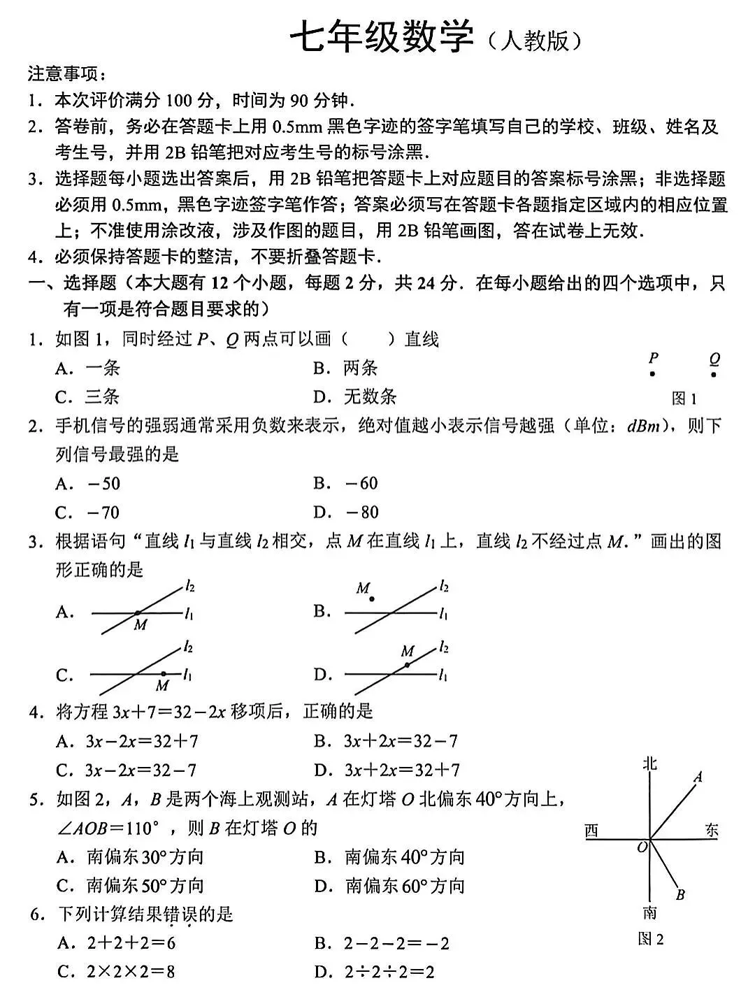 2026初中数学期末考试卷1
