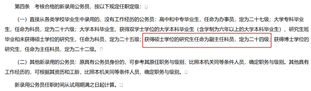 根据《新录用公务员任职定级规定》,研究生在遴选考试中拥有更广的选择范围,更受招录单位青睐。入职后,他们的评级起点更高,薪资待遇也更优厚。