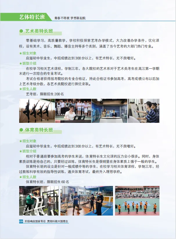 3、有体育、音乐、舞蹈、美术、播音主持、模特艺术特长品学兼优学生优先录取。