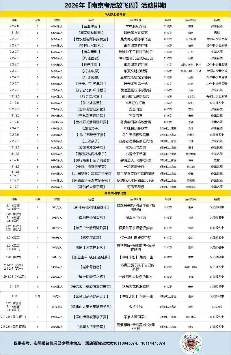 1.29-1.31(考试后)、2.11-2.13(放假后)适合年龄:6-13岁(儿童单飞)