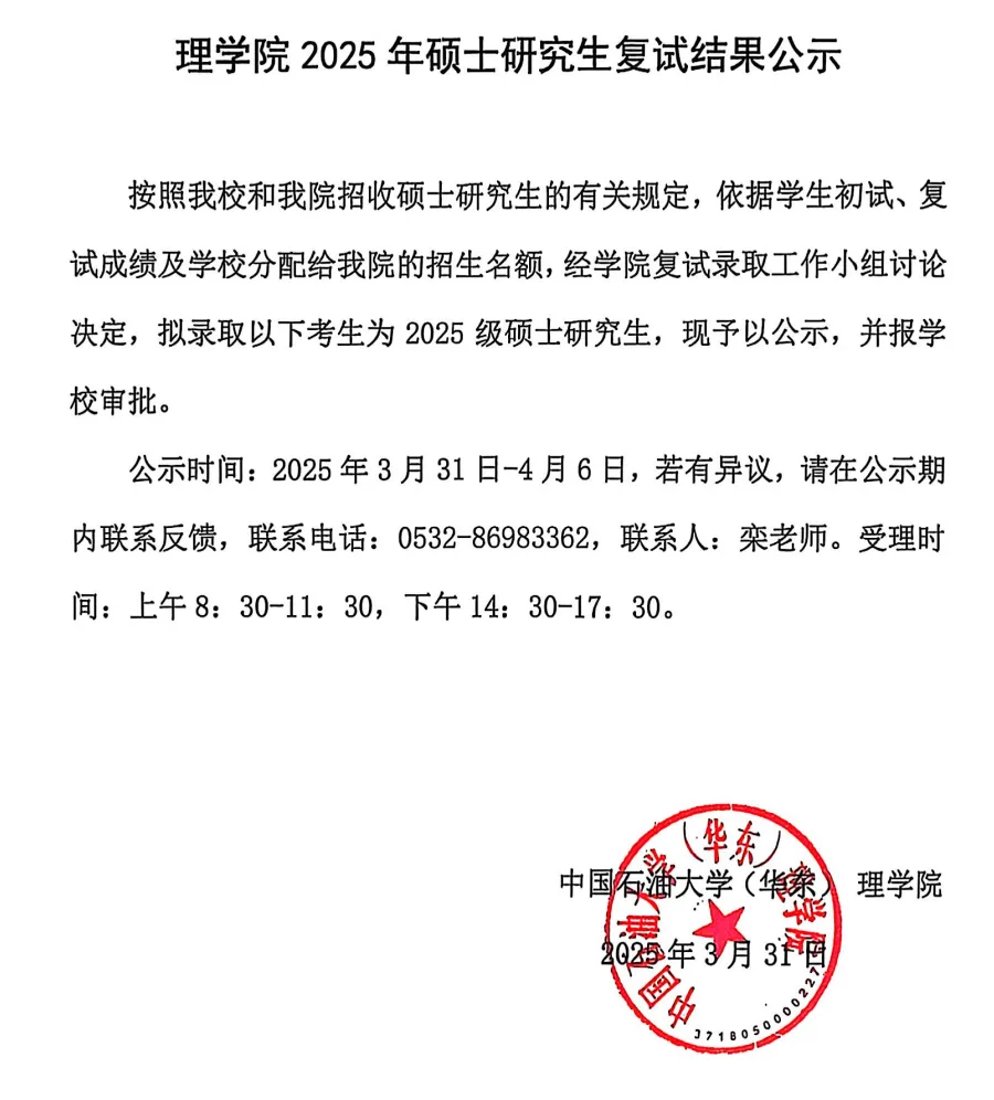 中国石油大学(华东),理学院,考研指南……