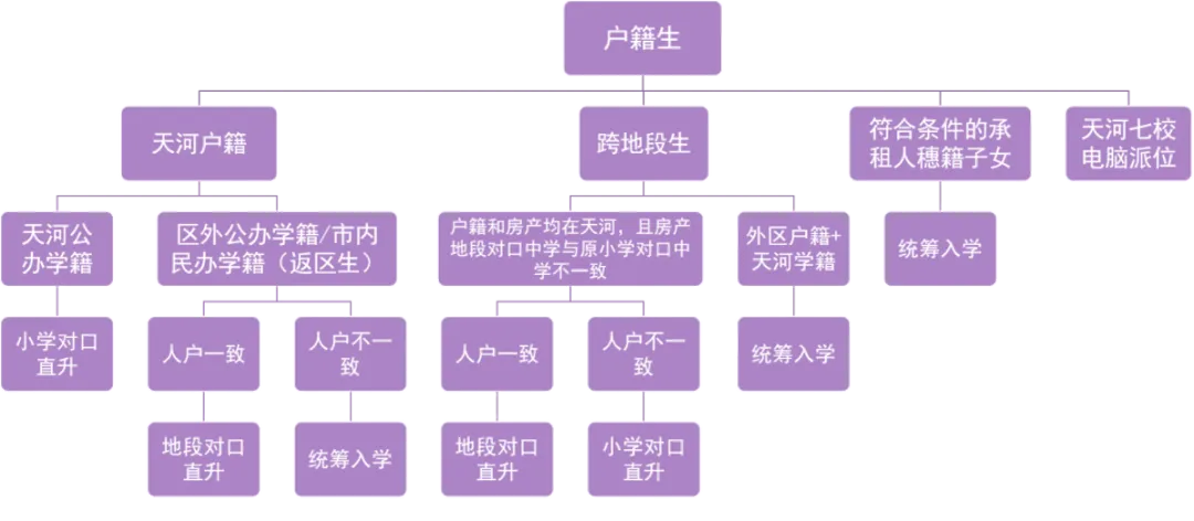 第二类,“返区生”:就是孩子户口在天河,小学是在外区读的,或者是在广州市内的民办小学读的。现在想回天河来上公立初中,就需要“人户一致” 。