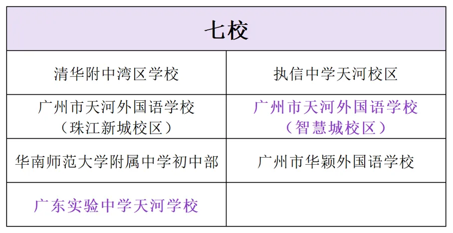 除了直升,天河区还有一个很重要的渠道—七校电脑派位。往年是五所,今年新增到七所。