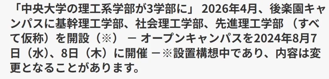 大部分新学部已在学校官网或公示文件中明确了开设时间(2026 年 4 月)与入学定员,但具体的入试科目、日程与外国留学生专项等细节,以各校正式发布的《募集要項》为准。