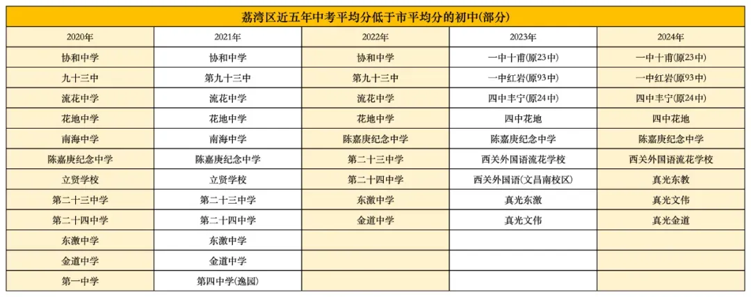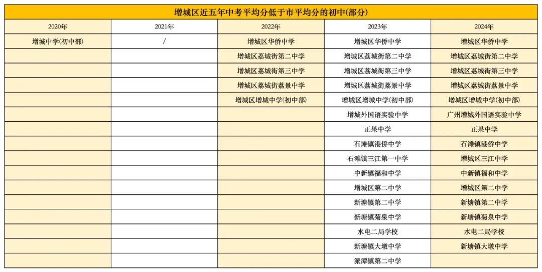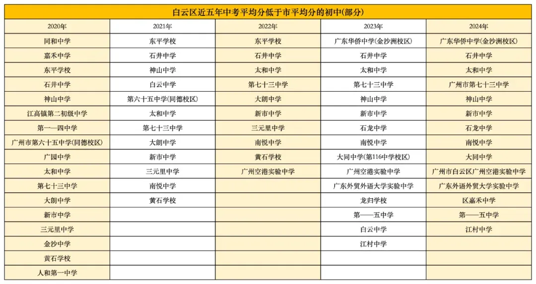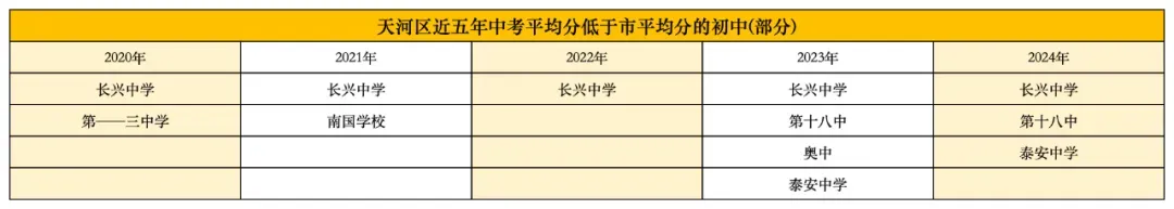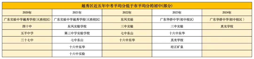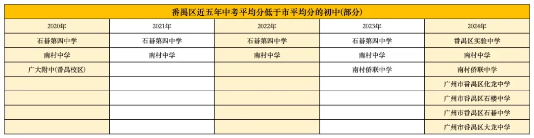 以下就是近5年广州各区中考平均分低于市平均的初中,仅供参考!