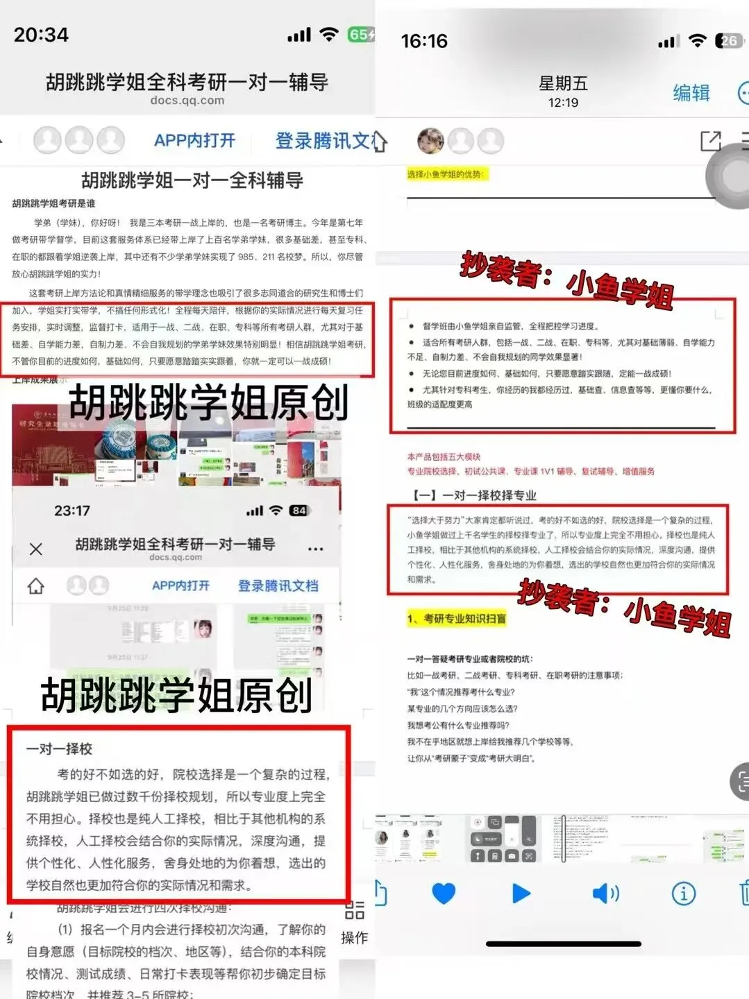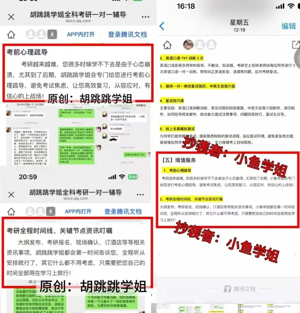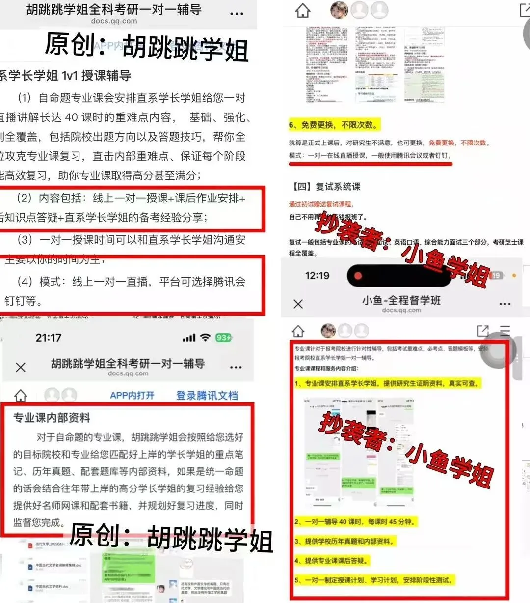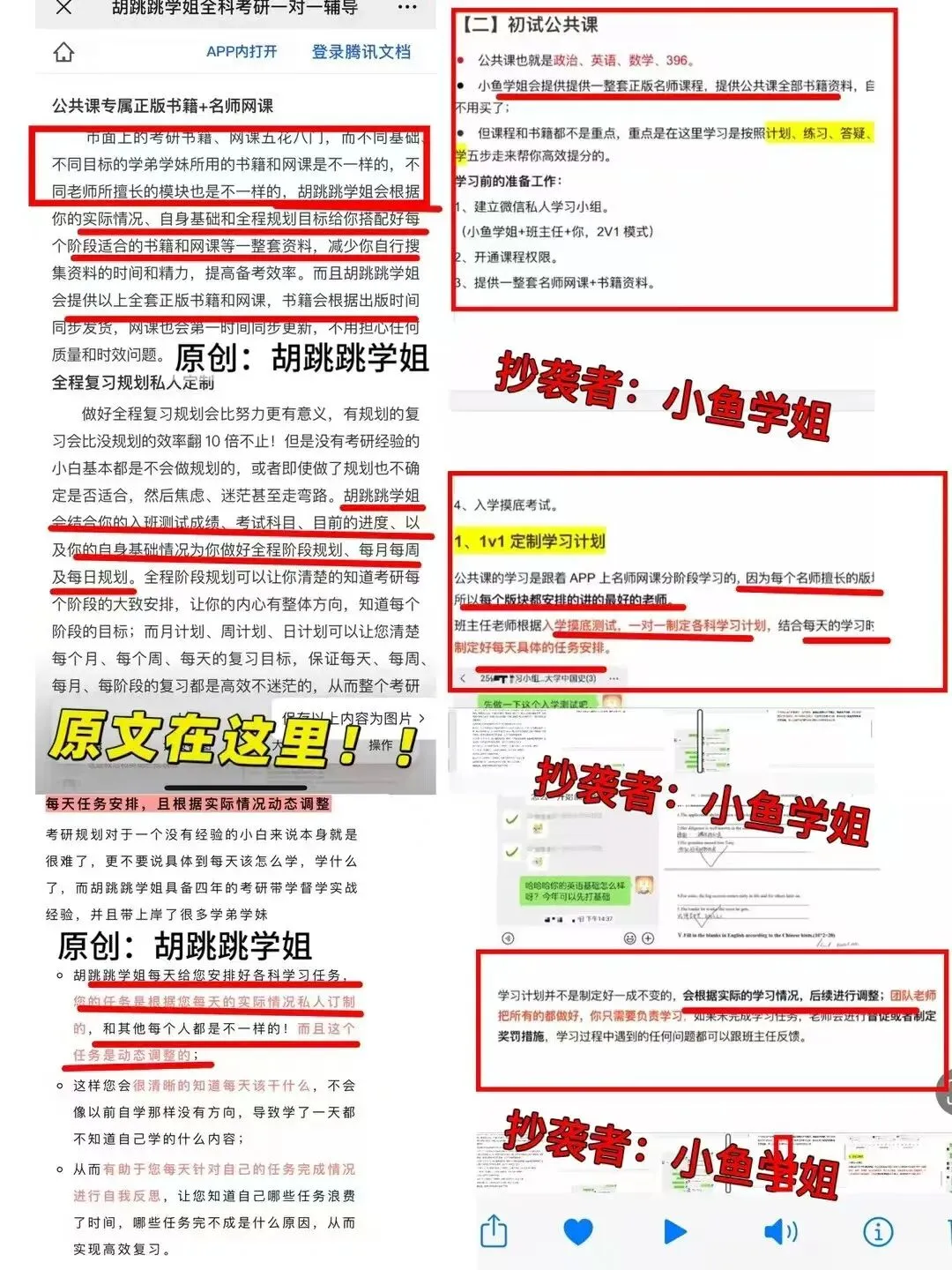 她的全程督学切文档里的内容和我所创的“胡跳跳学姐带学督学服务体系”里的内容多处一样,内容一点没变。