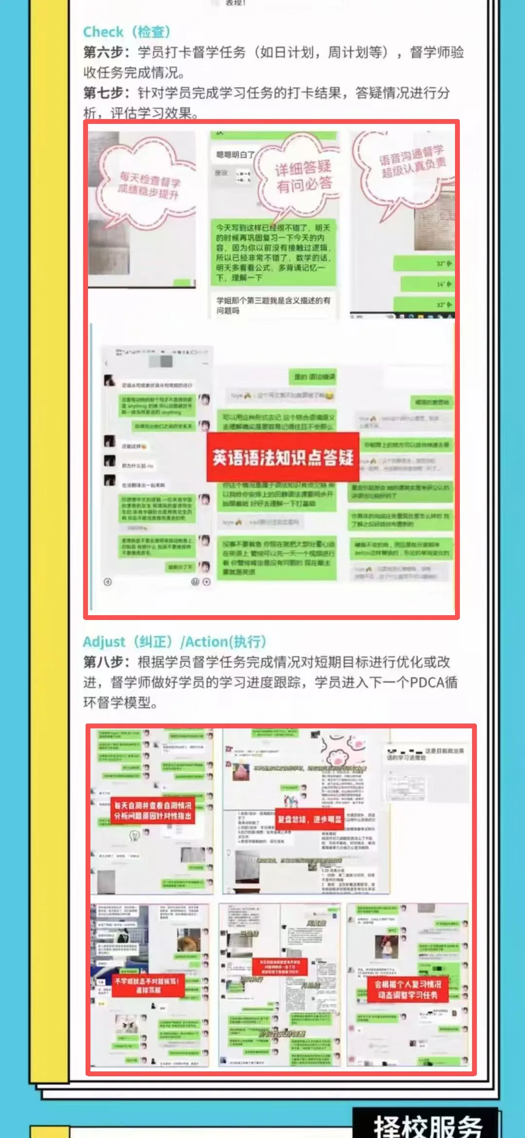 比如说学生的打卡反馈、答疑截图、学习计划调整记录
