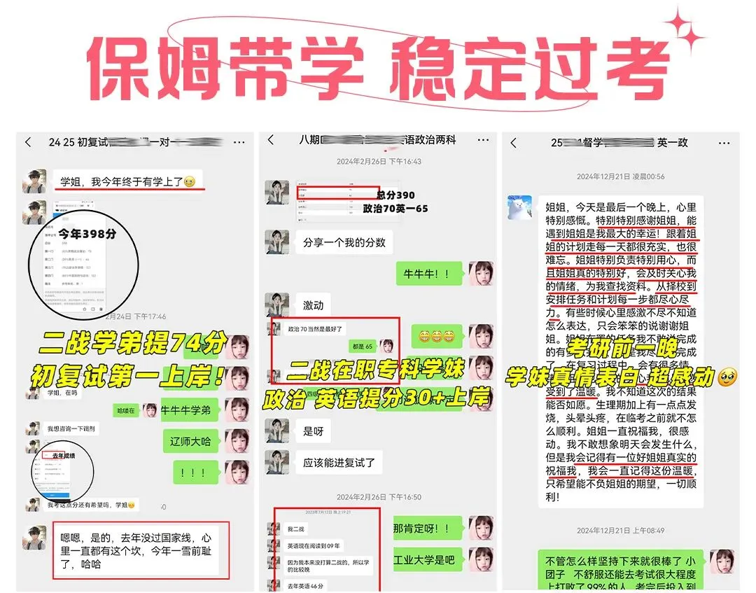 各位学弟学妹在选择带学督学的服务和机构时,一定要擦亮眼睛,多对比、多询问、多搜索、多核实,选择合适自己的,靠谱的机构陪伴考研上岸!