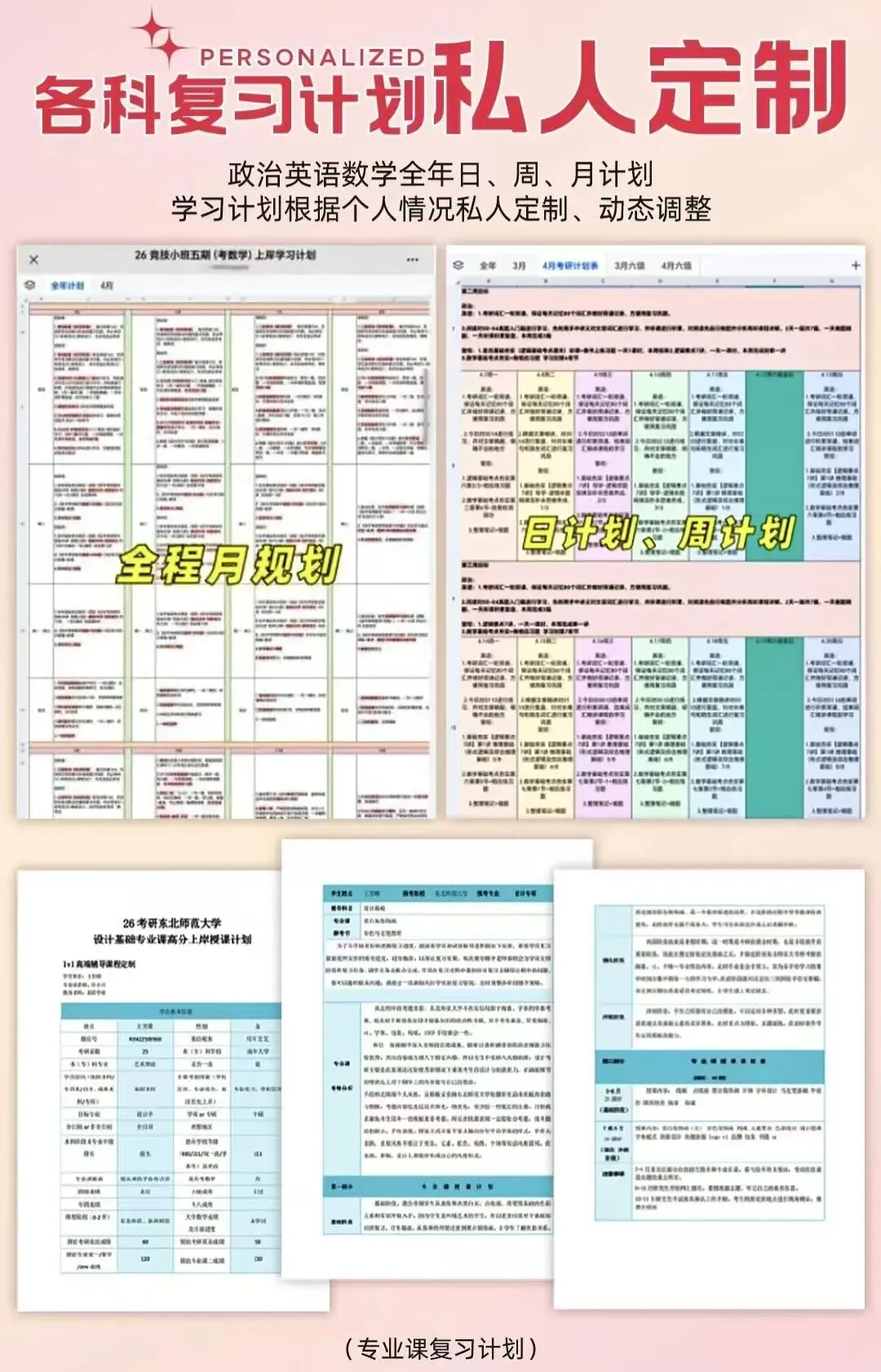 团队课程体系完善,涵盖全科一对一带学督学、四人竞技小班、专业课一对一、择校择专业指导、数学答疑班等多种课程,提供全科目、全阶段的辅导服务,从日常督学、计划个性化定制、备考方法指导到情绪疏导,团队始终全程陪伴学员备考,助力学生稳步上岸。