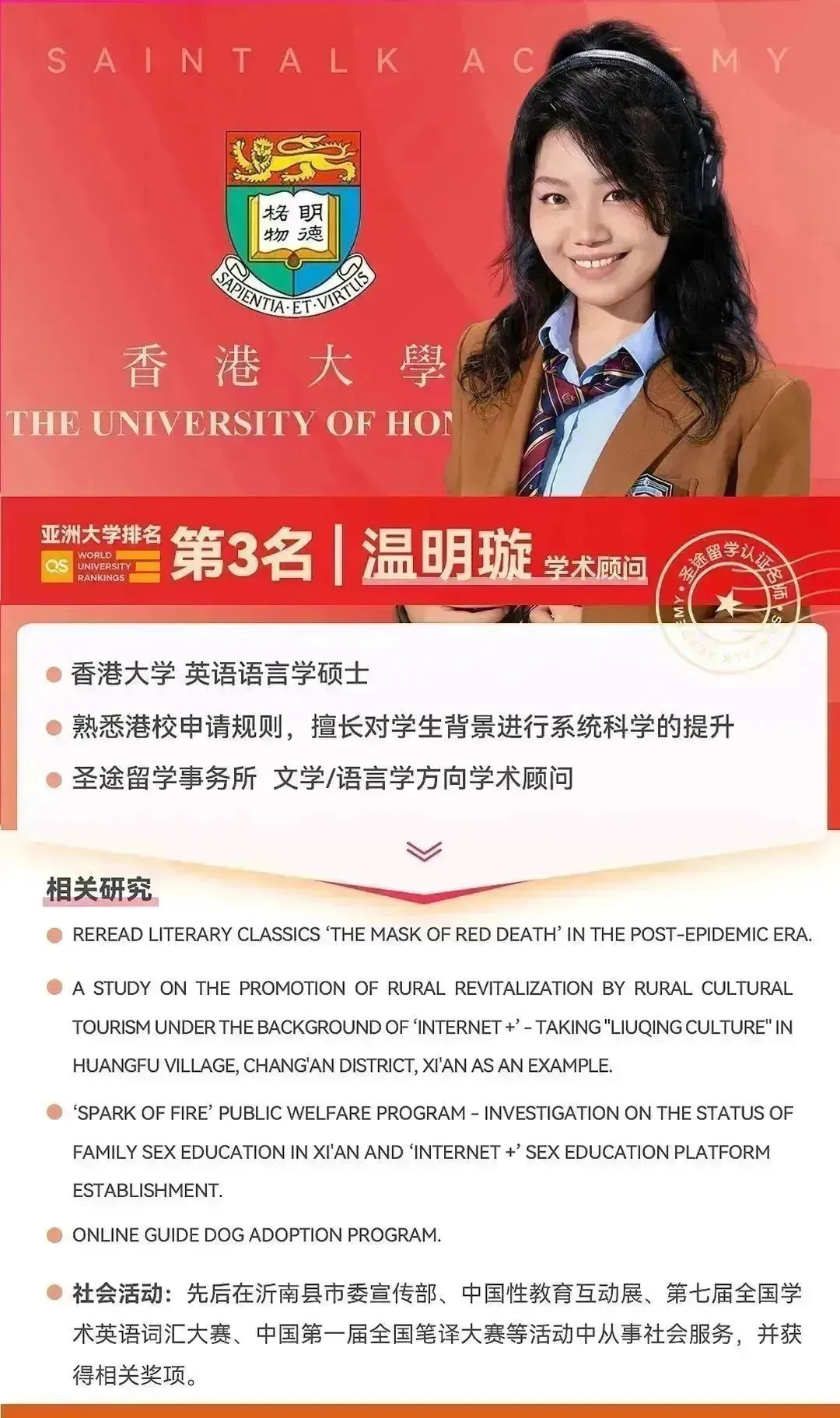 虽然这个项目5.30日才截止,但众所周知港硕越晚越难,而且该专业滚动审核、滚动录取,建议感兴趣的同学尽早准备申请材料尽早递交!