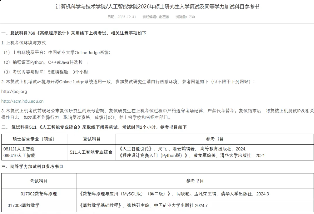 计算机科学与技术学院/人工智能学院公布了的复试参考书目和注意事项比较详细。