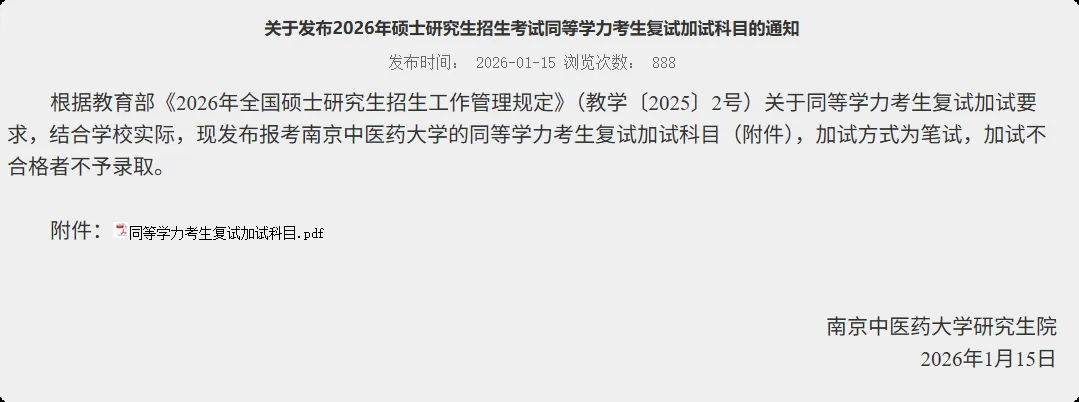 发布2026年硕士研究生招生考试同等学力考生复试加试科目的通知