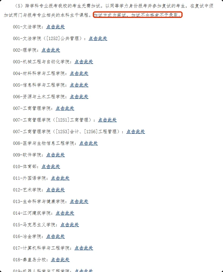 跨学科专业报考我校的考生无需加试。以同等学力身份报考并参加复试的考生,在复试中须加试两门与报考专业相关的本科主干课程。加试方式为笔试,加试不合格者不予录取。