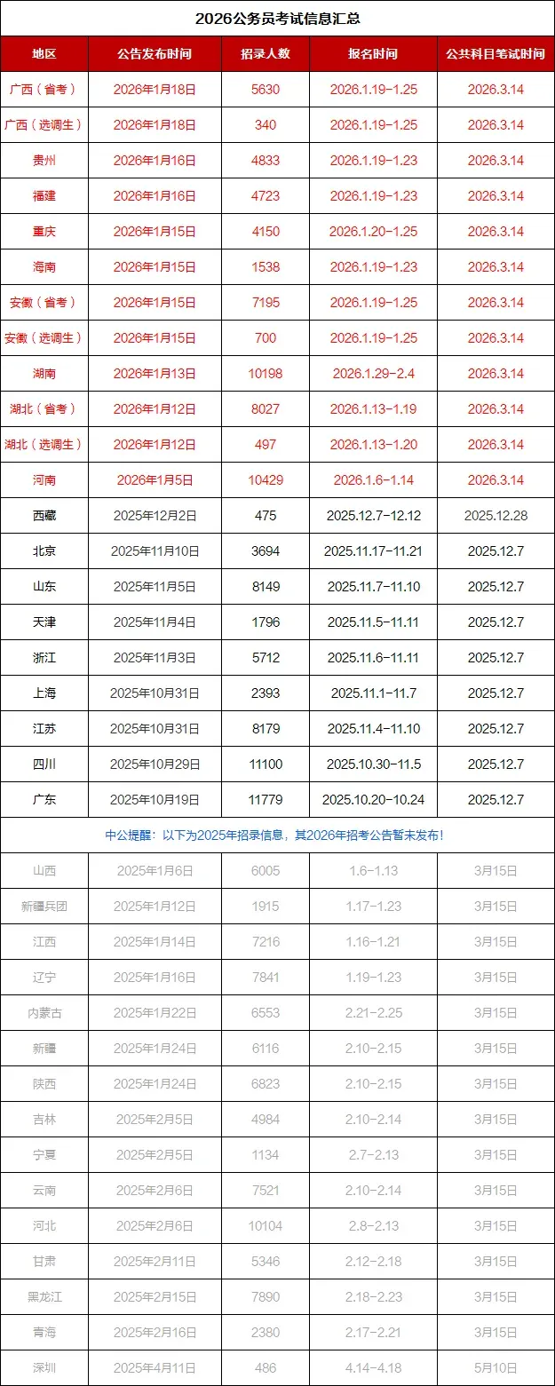 特别提醒:2026年1月19日8:00至1月21日16:00期间,网上报名系统将显示各招考职位报考人数等情况,1月21日16:00之后,不再显示各招考职位报考人数。