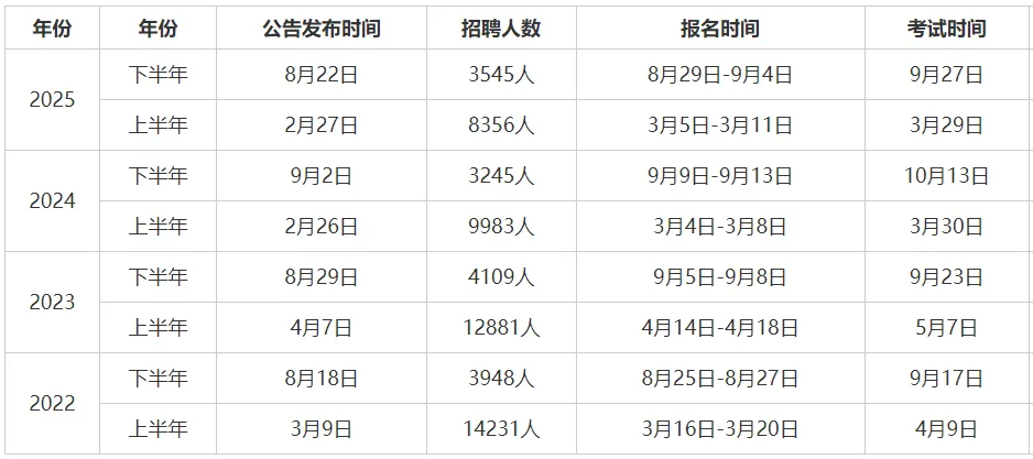 陕西共有三次比较大型的考试,占据了陕西教师编制考试的主要招聘量: