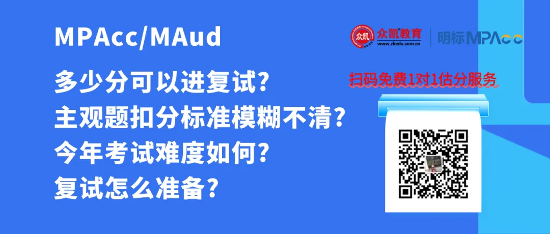 明标MPAcc为众凯教育集团旗下专业MPAcc辅导品牌,推送的图文信息及原创文章,欢迎大家转载,转载请标明来源于明标MPAcc!若涉及到第三方作者提供的图文信息,转载内容也仅供学习参考,如有侵犯您的版权,请联系我们021-51086775,我们将在三个工作日内改正。