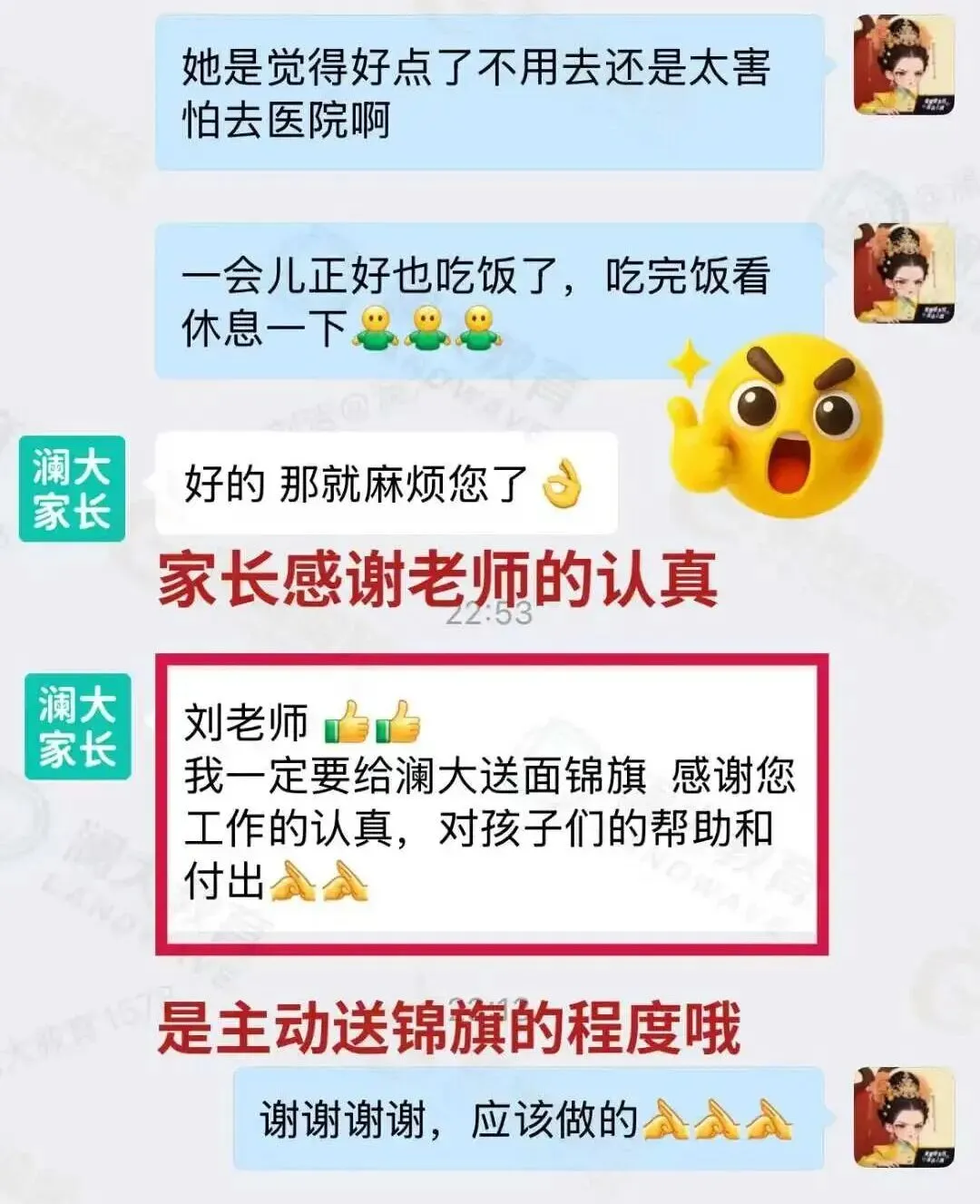 “家长感谢老师们的付出,想给澜大新橙送锦旗 🚩”