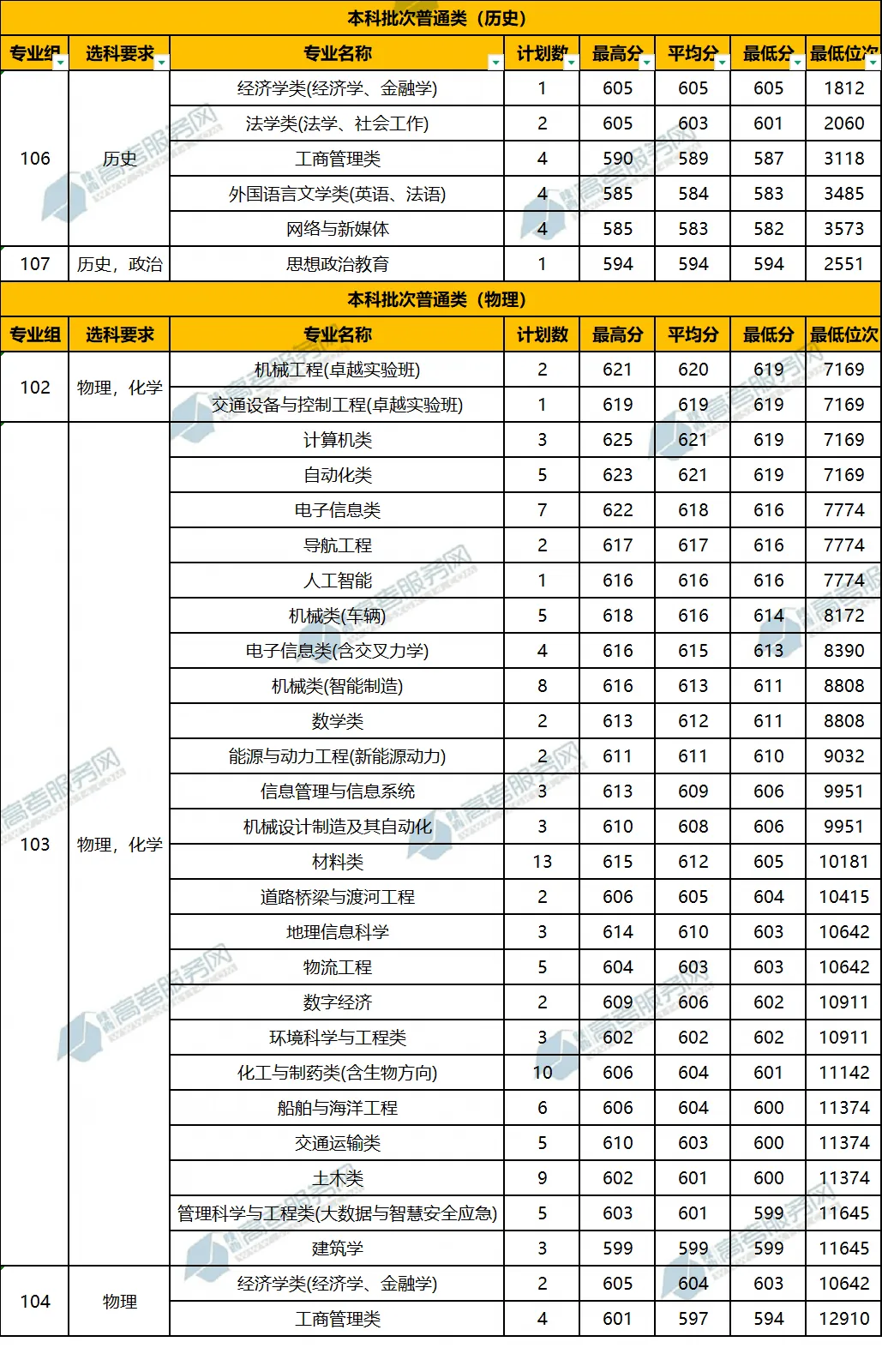 武汉理工大学公布了2025年在陕招生专业录取分数线。