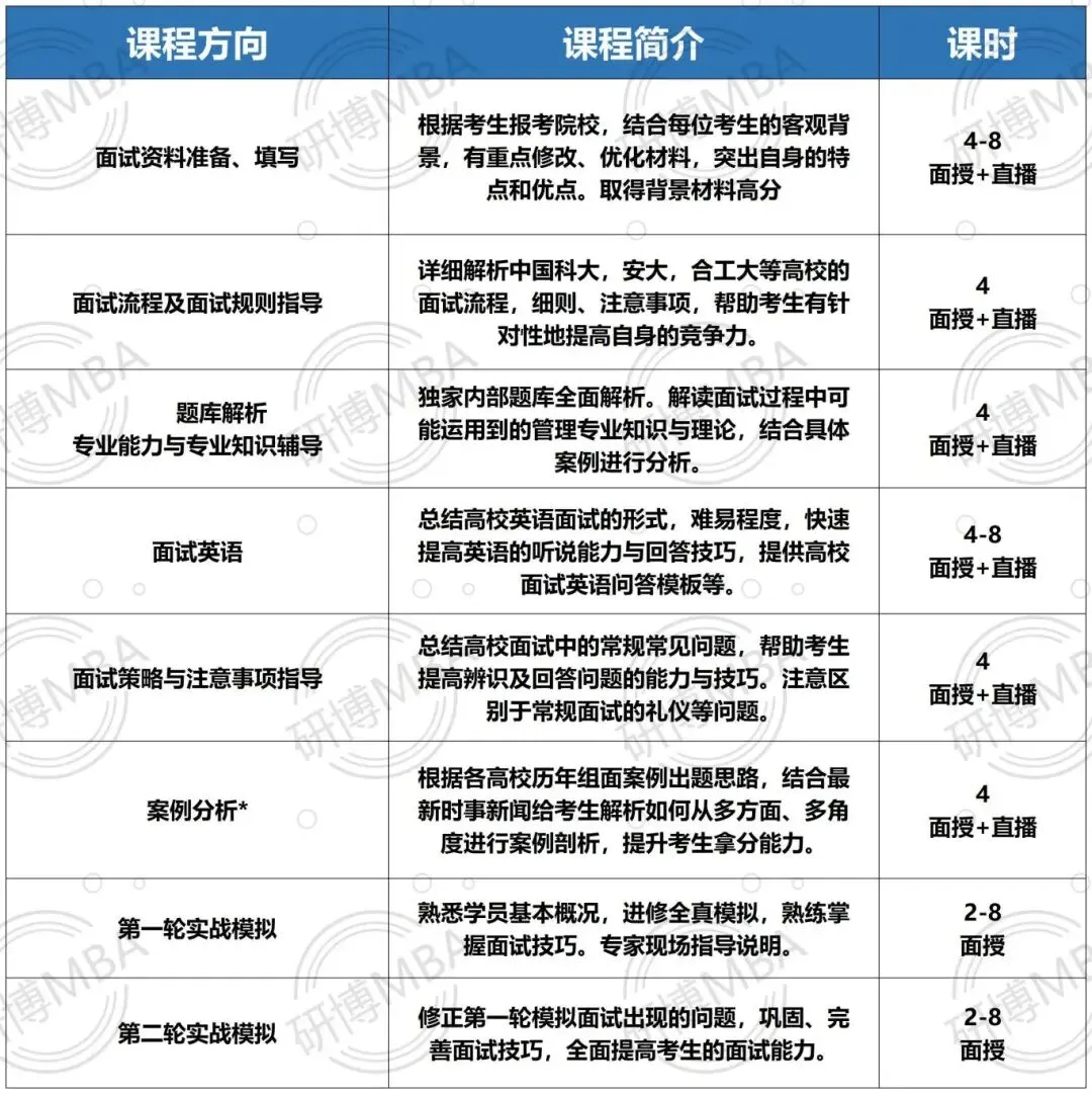研博有着丰富的面试辅导经验,更有各校面试经验考题和接近真题的研博例库。