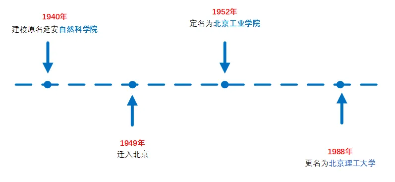 北京理工大学的前身是1940年诞生于延安的自然科学院,是中国共产党历史上第一个开展自然科学教学与研究的专门机构。1949年,学校迁入北京;1952年,定名为北京工业学院,成为新中国第一所国防工业院校;1988年,更名为北京理工大学。