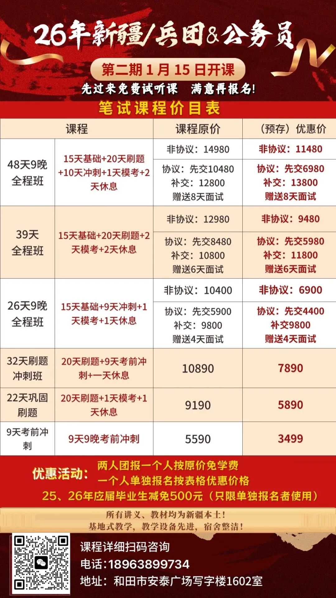 >2026年新疆&兵团公务员考试培训1月20日开课!邀你参加免费试听课!