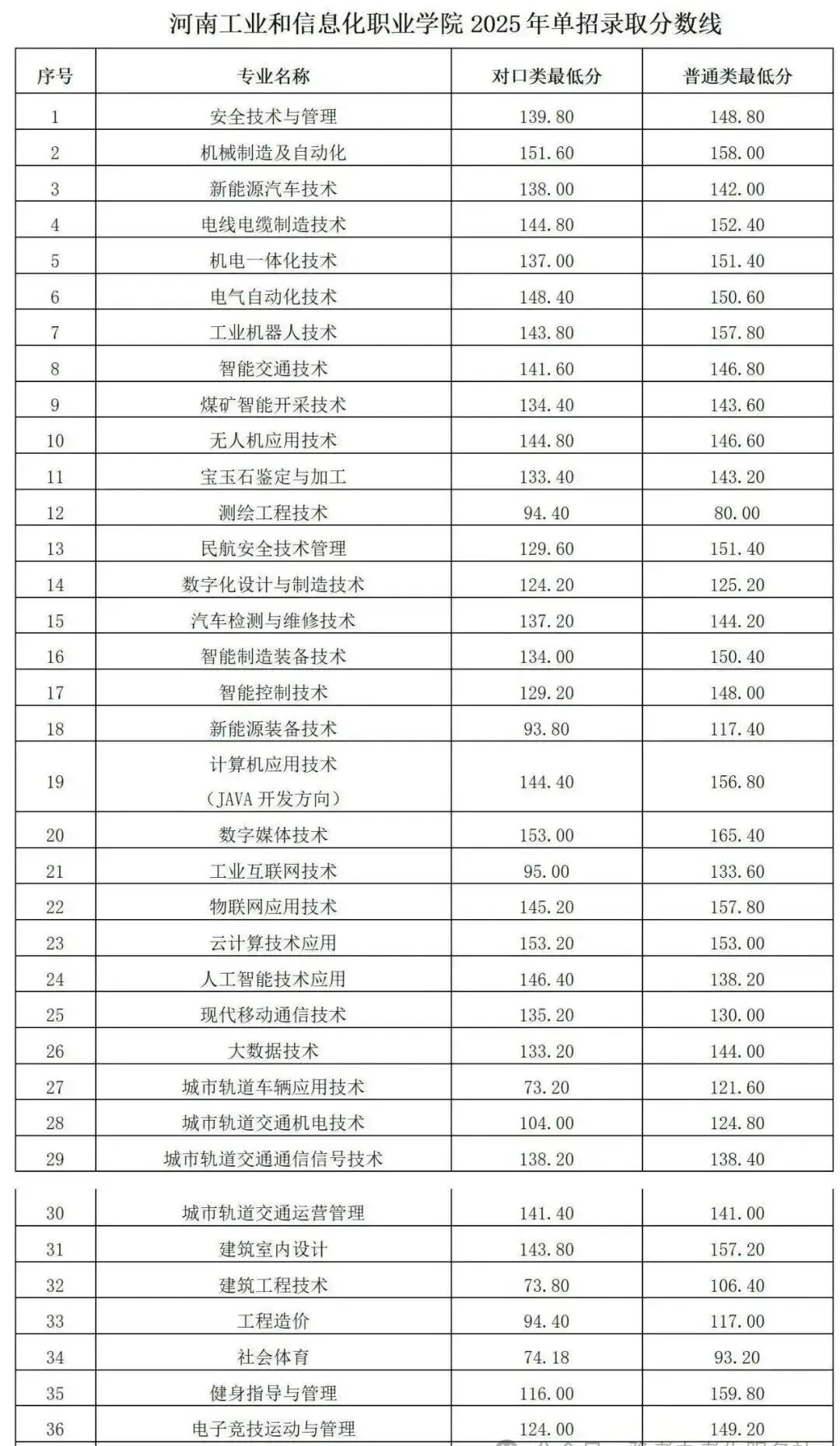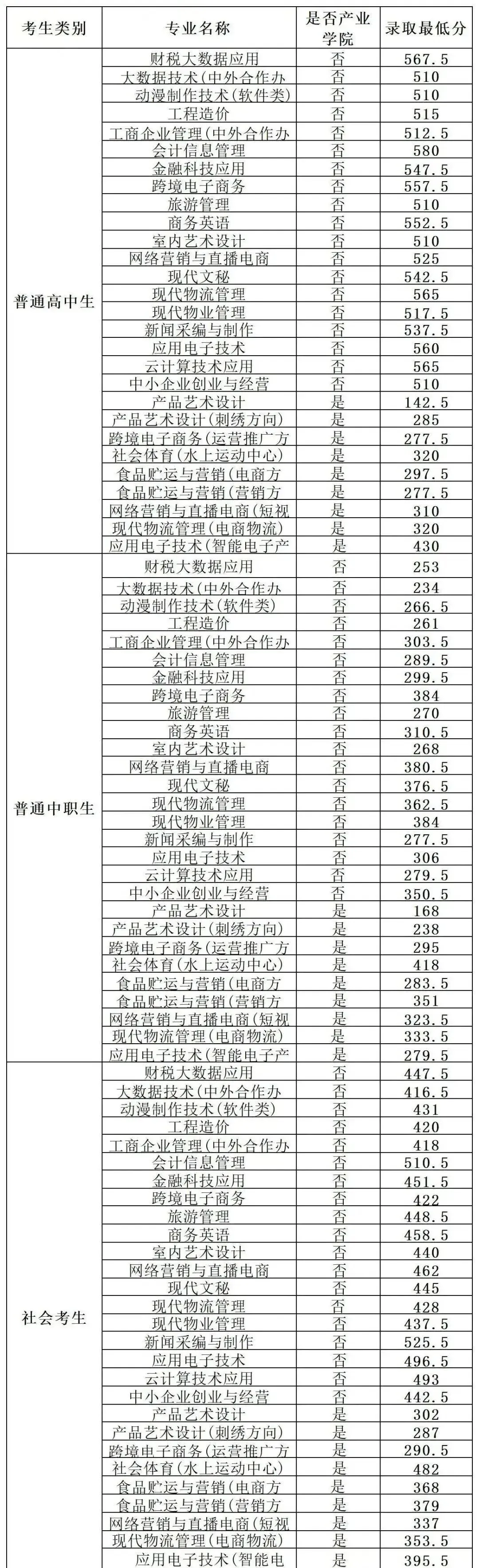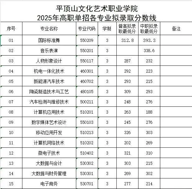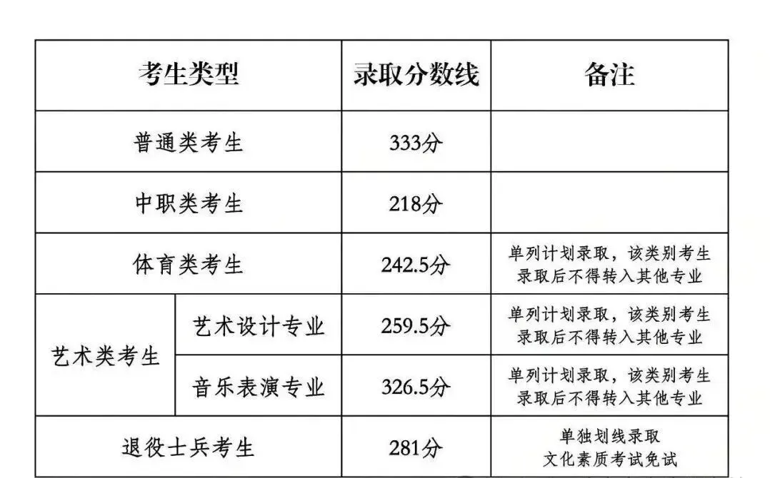 我校2025年单招考试分三类考生分别划定录取分数线:1.高中生分数线:470分;2.高中(社会)生分数线:441分;3.中职生分数线为:416分。