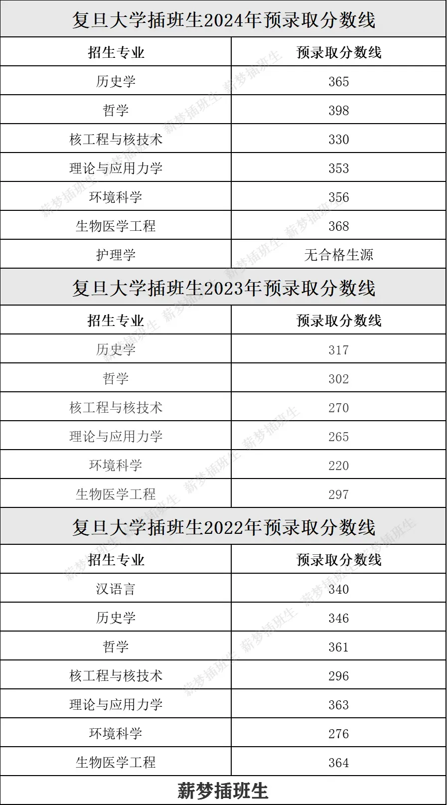 复旦插班生近三年录取分数线