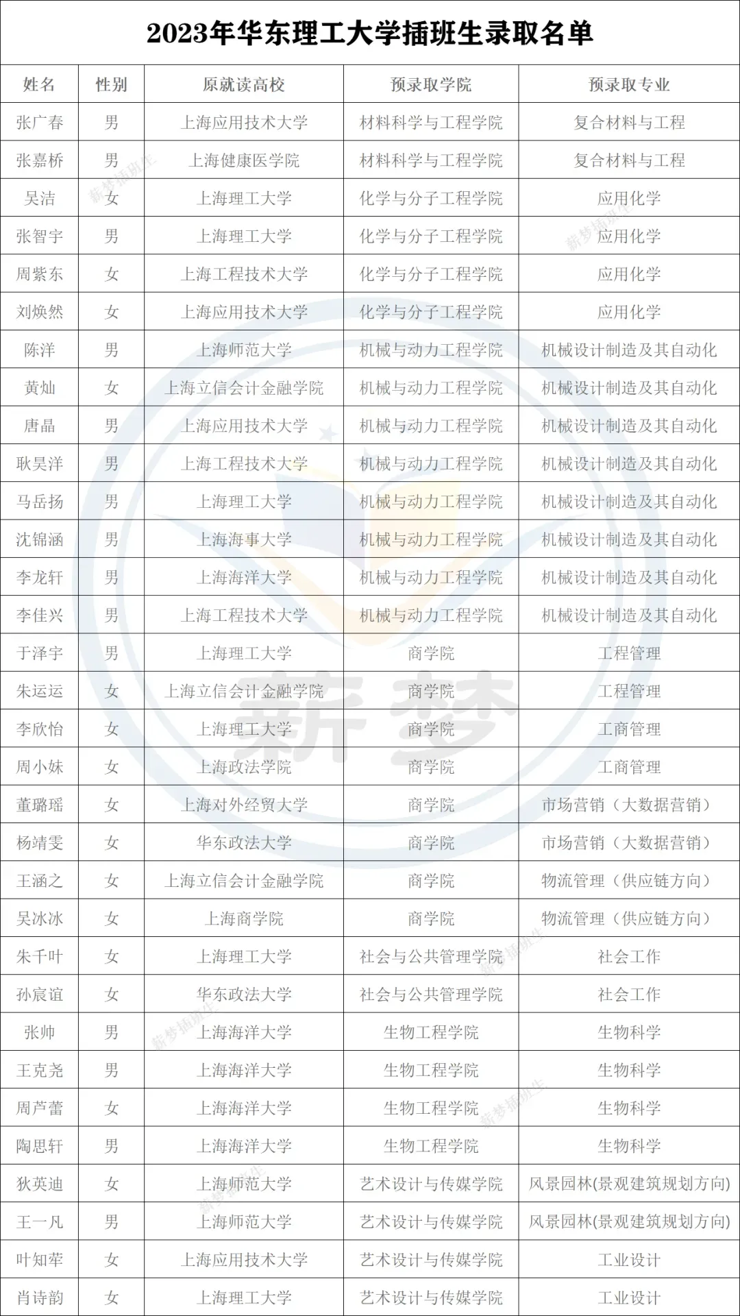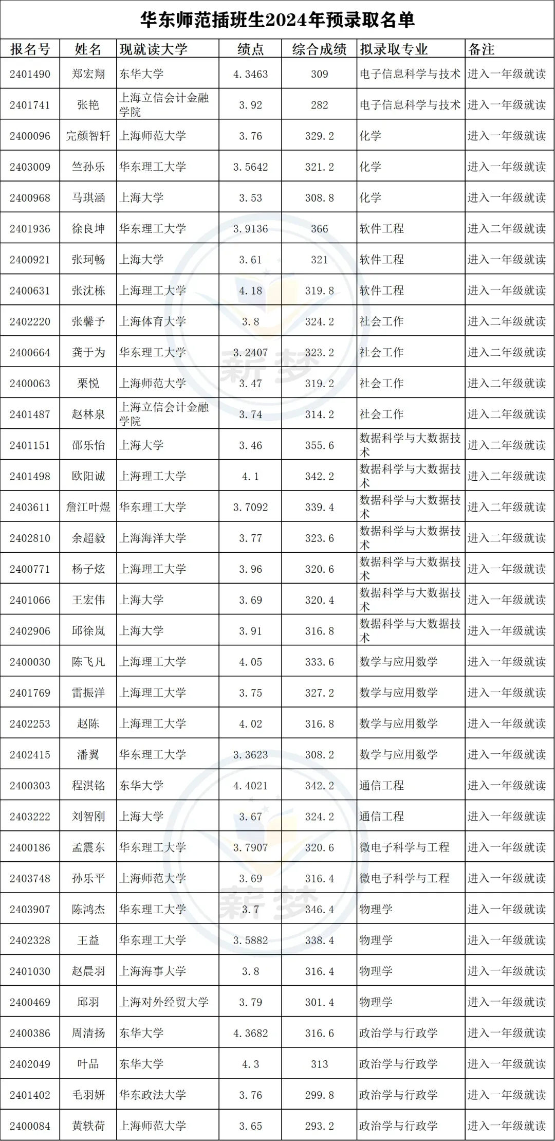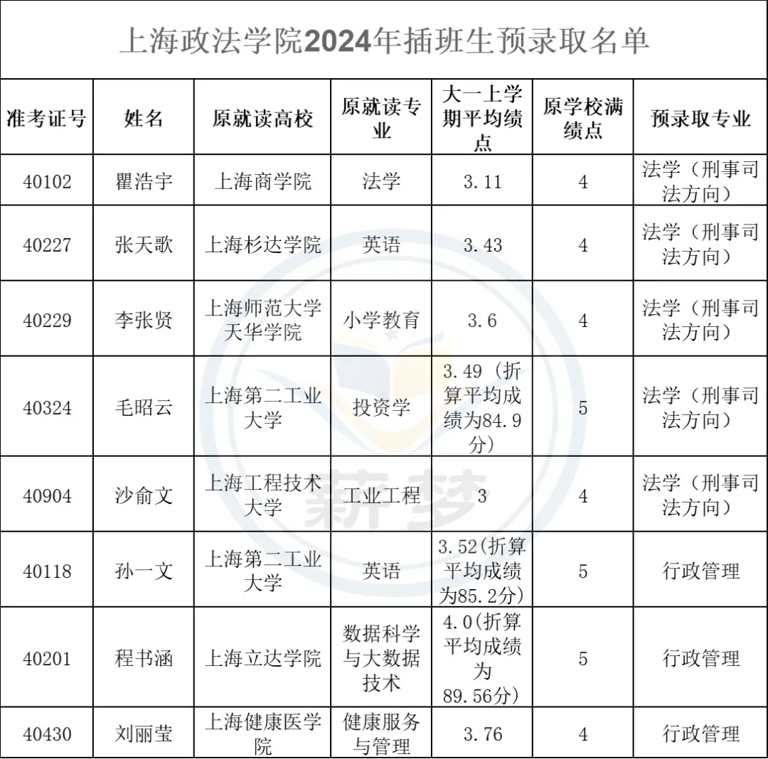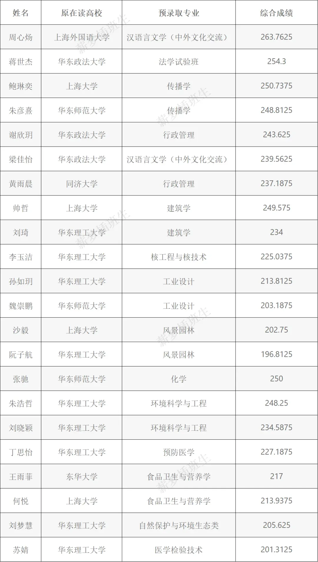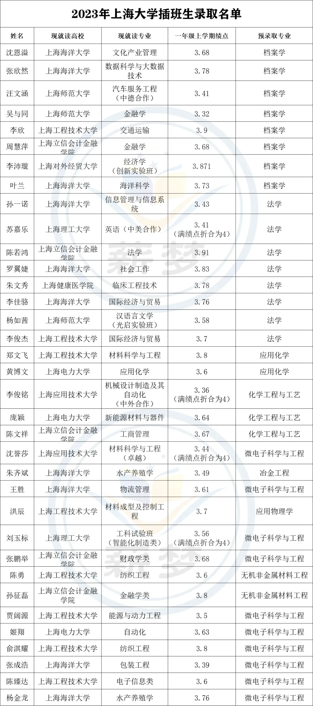 2022年上海交通大学插班生预录取名单