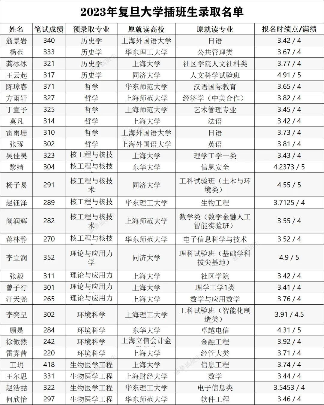 复旦插班生录取生源统计分析