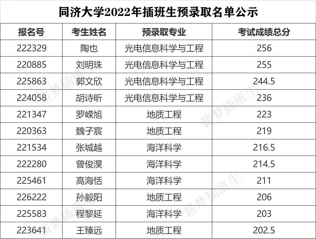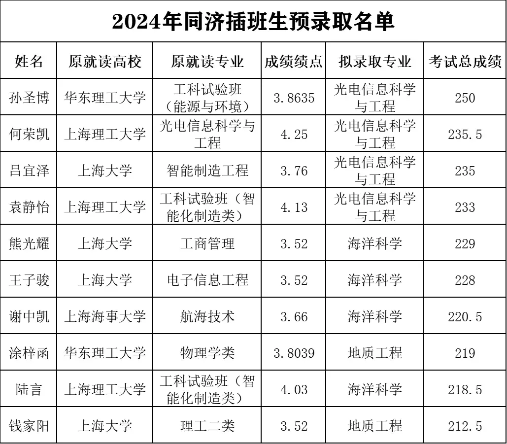 同济插班生分数线