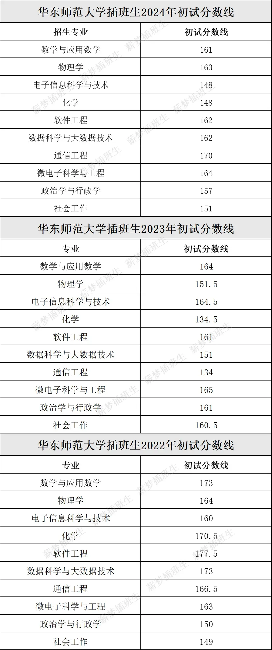 华东师范插班生近三年录取分数线