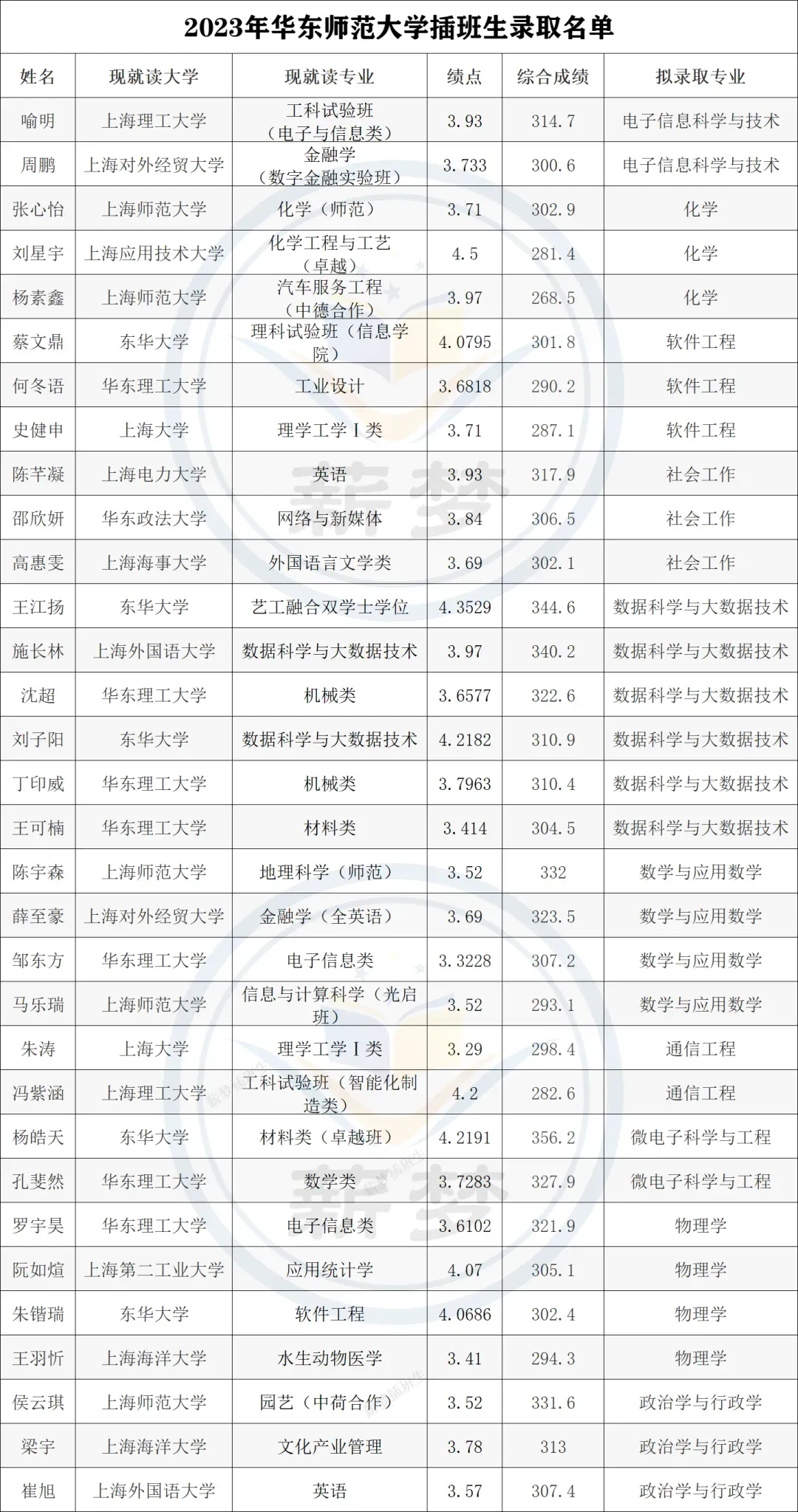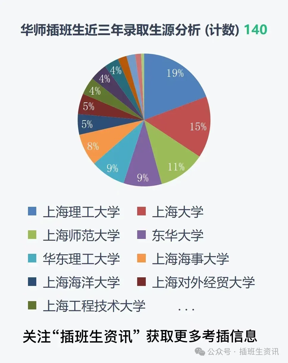 华东师范插班生录取生源统计分析