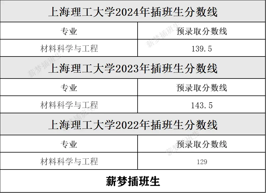 上海大学插班生近两年录取分数线
